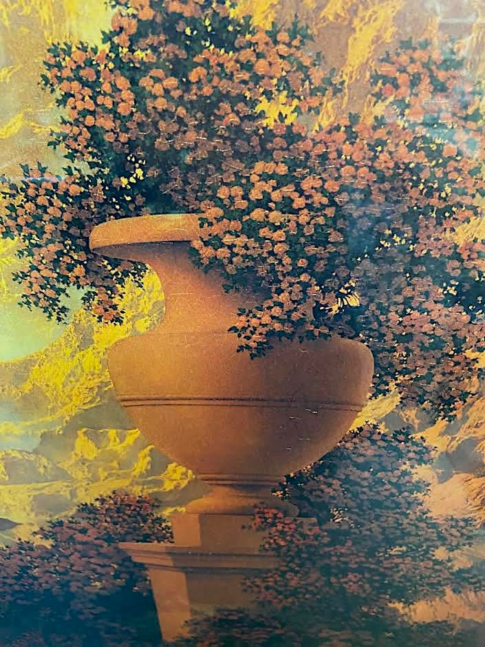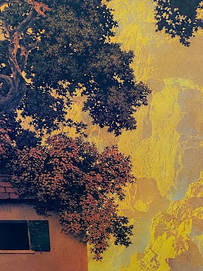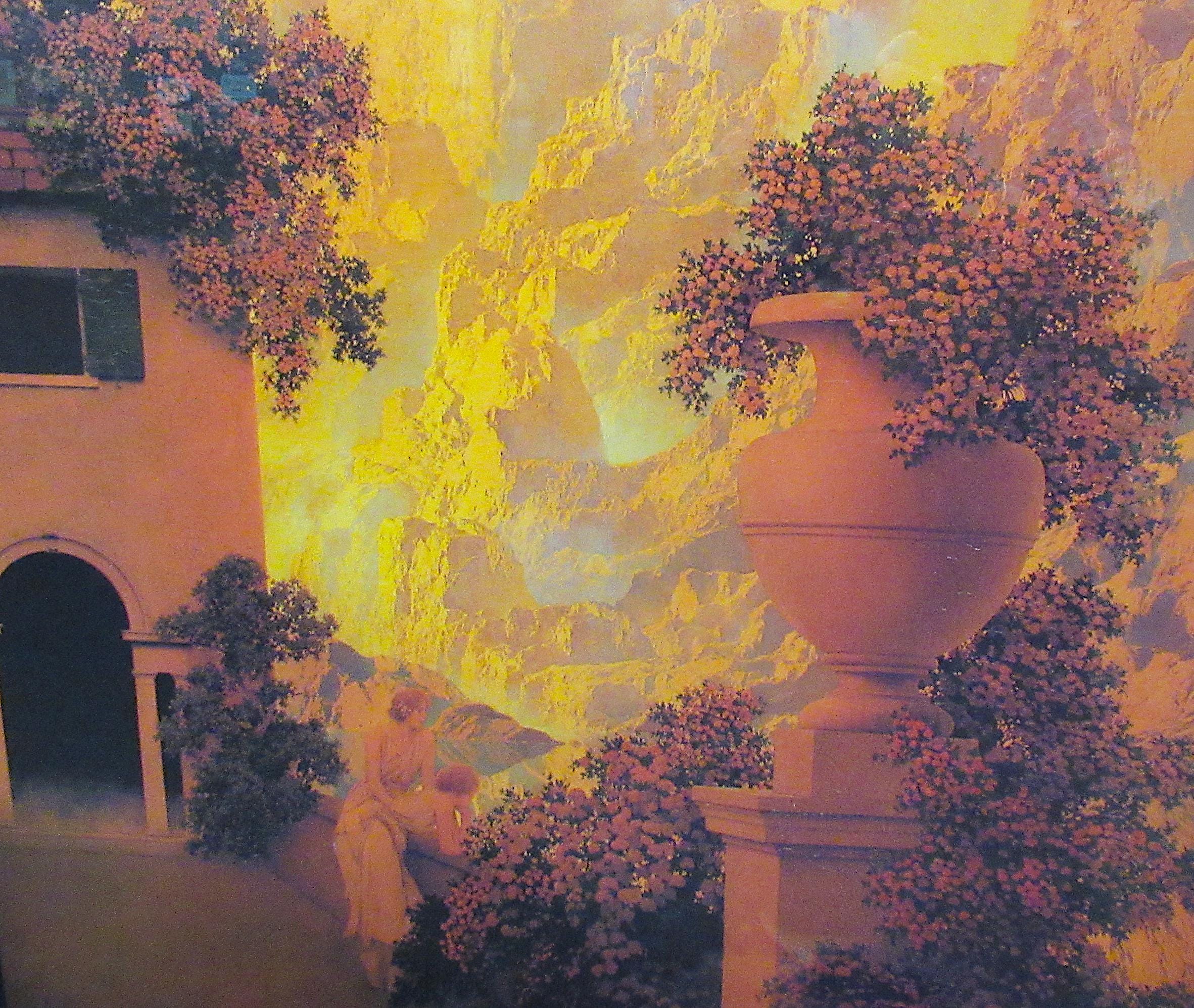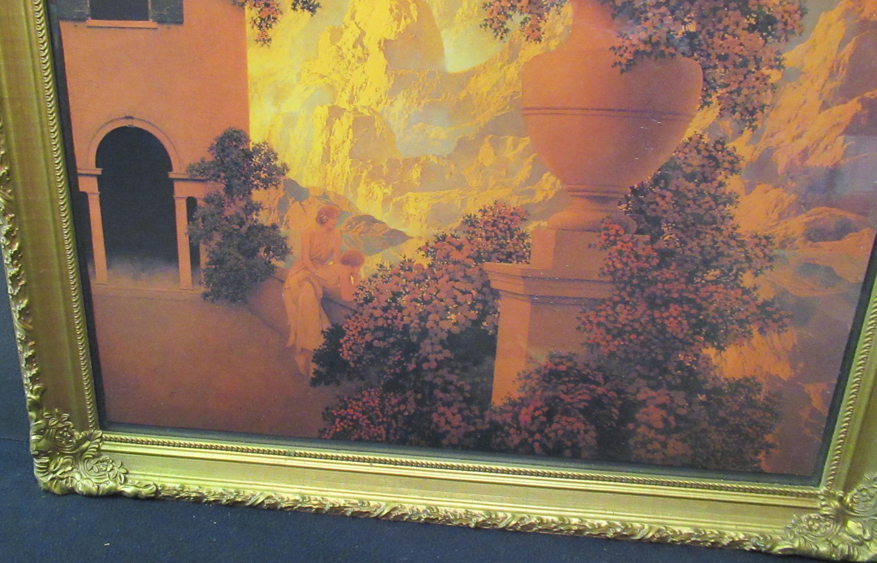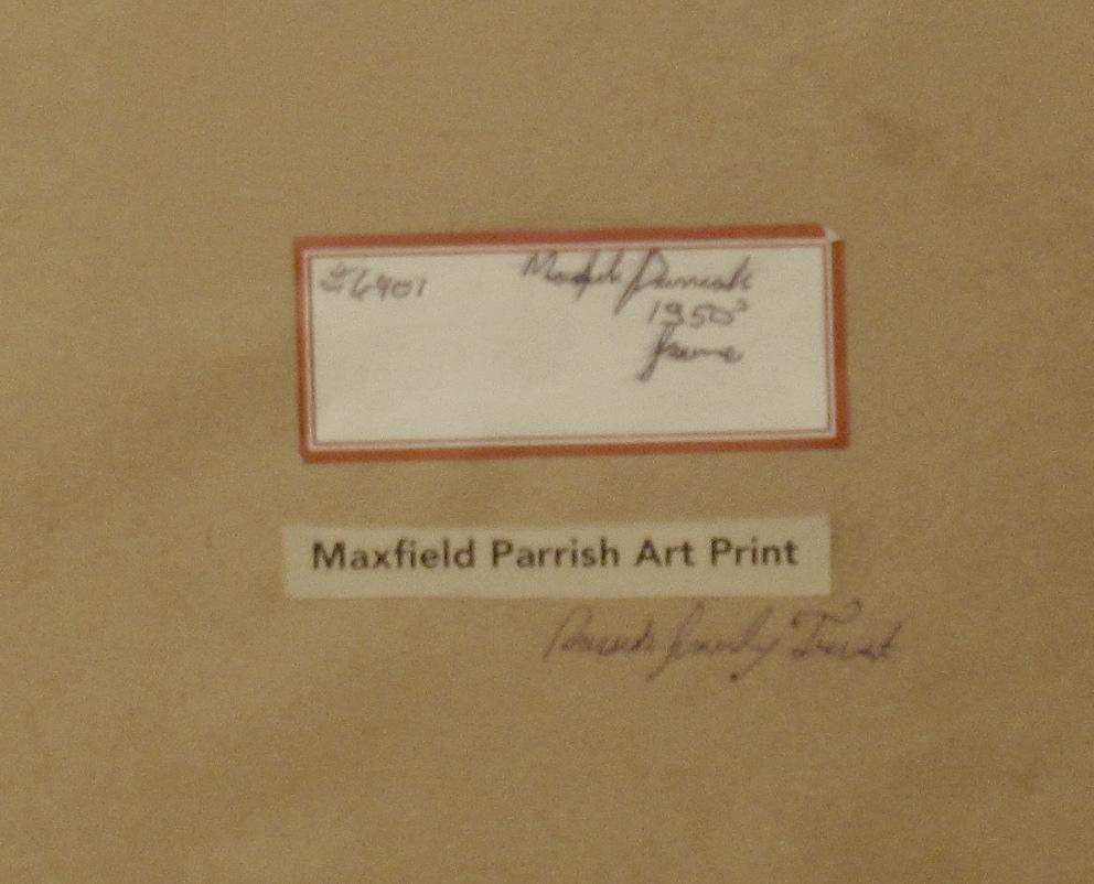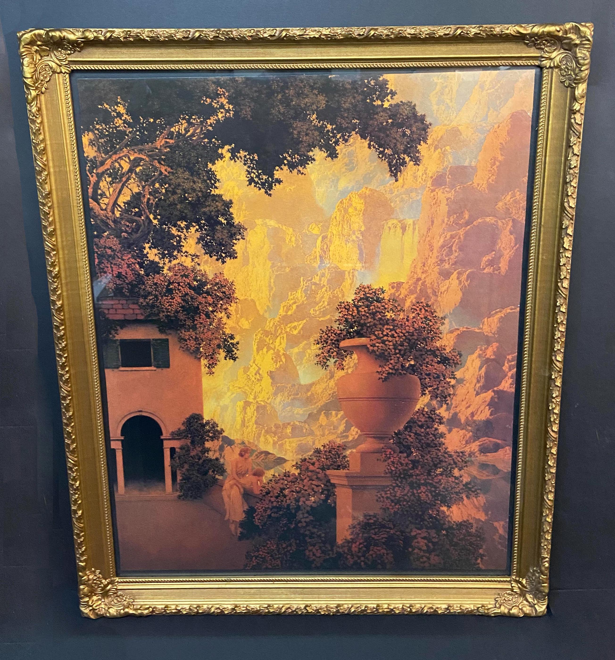 Maxfield Parrish Art Print in this beautiful vintage/antique frame. Parrish Trust printing in excellent condition, 27 x 34 rich and sharp. in storage for years, perfect color.. part of recent estate. Impressive size