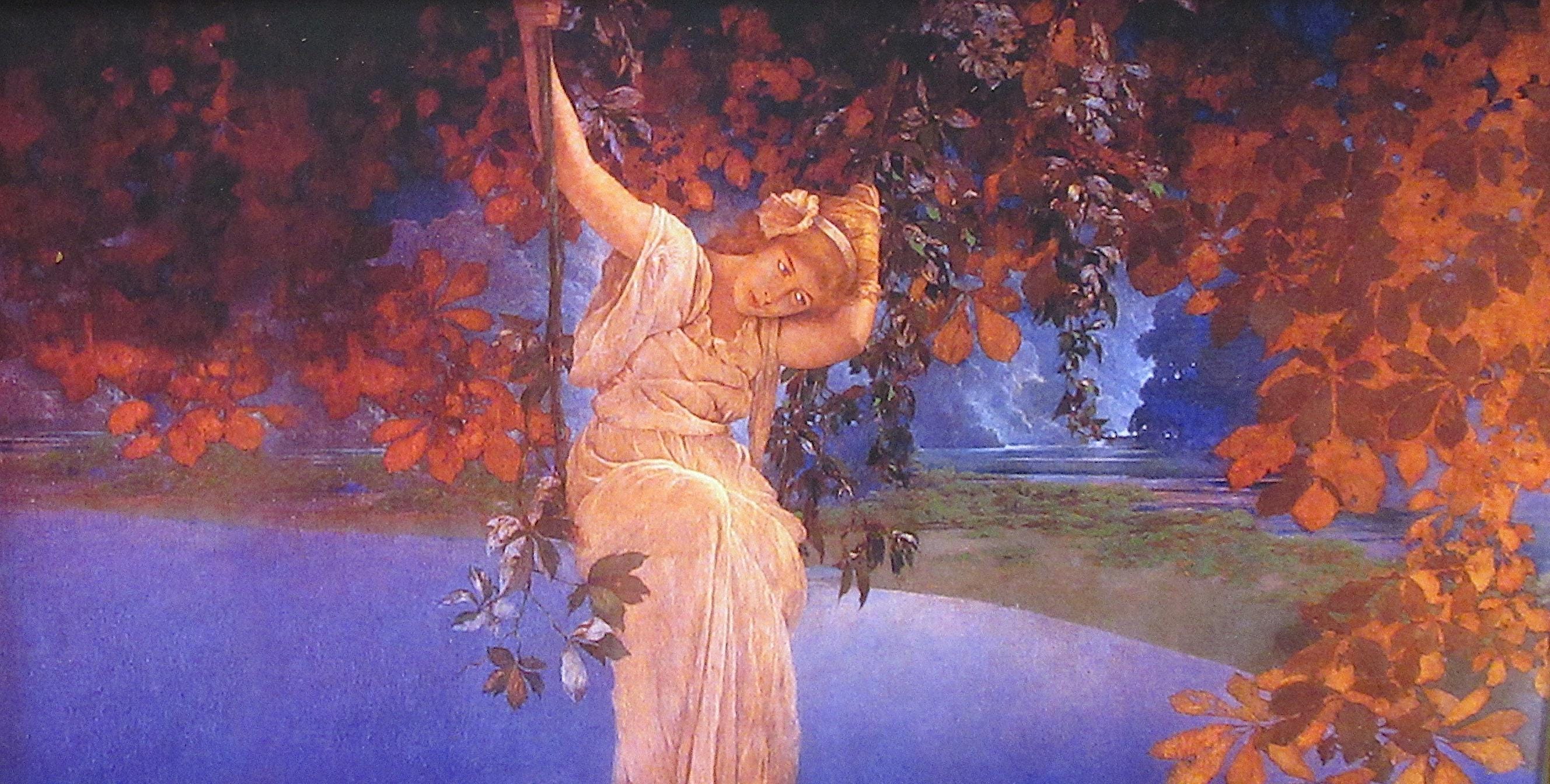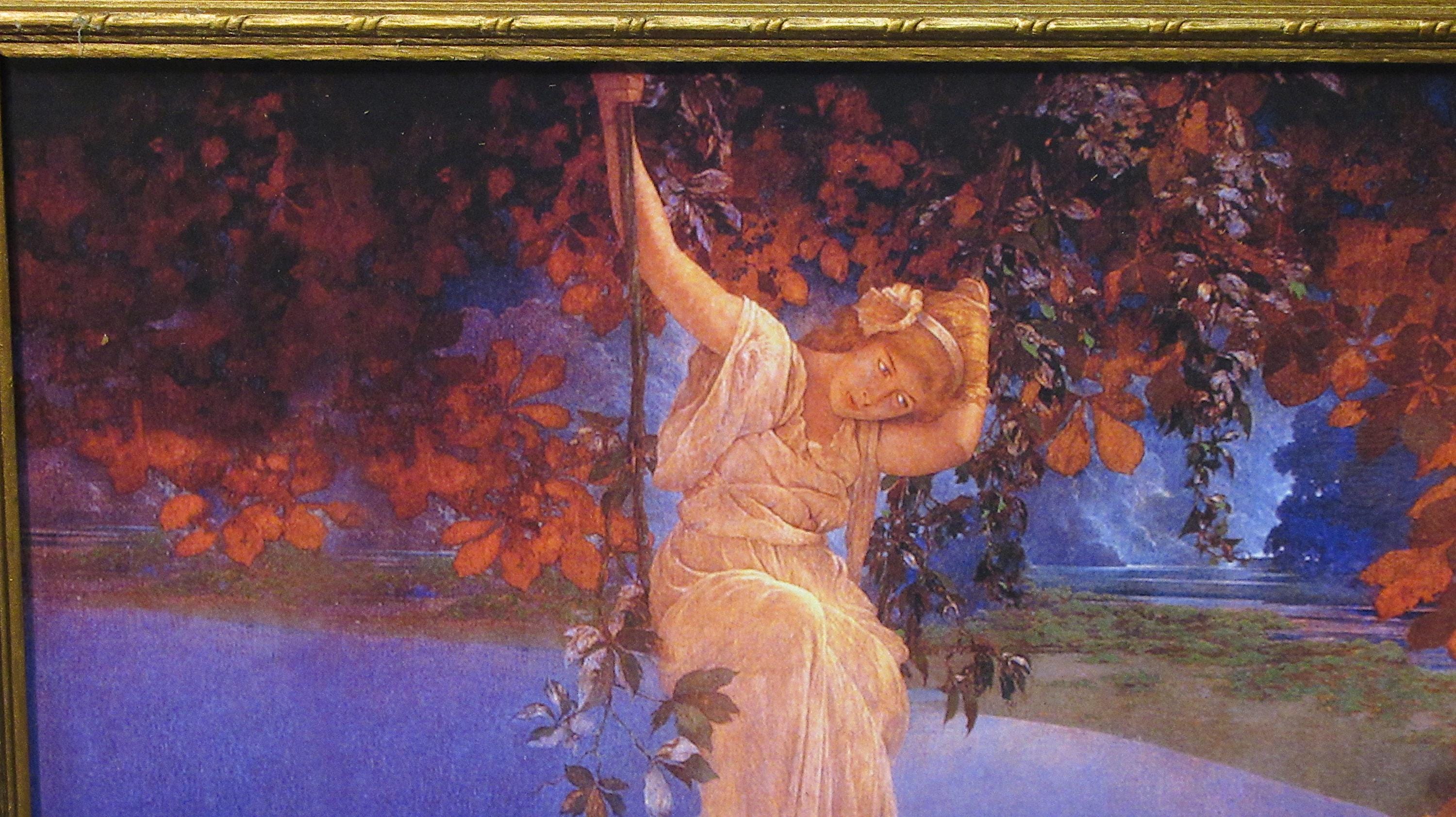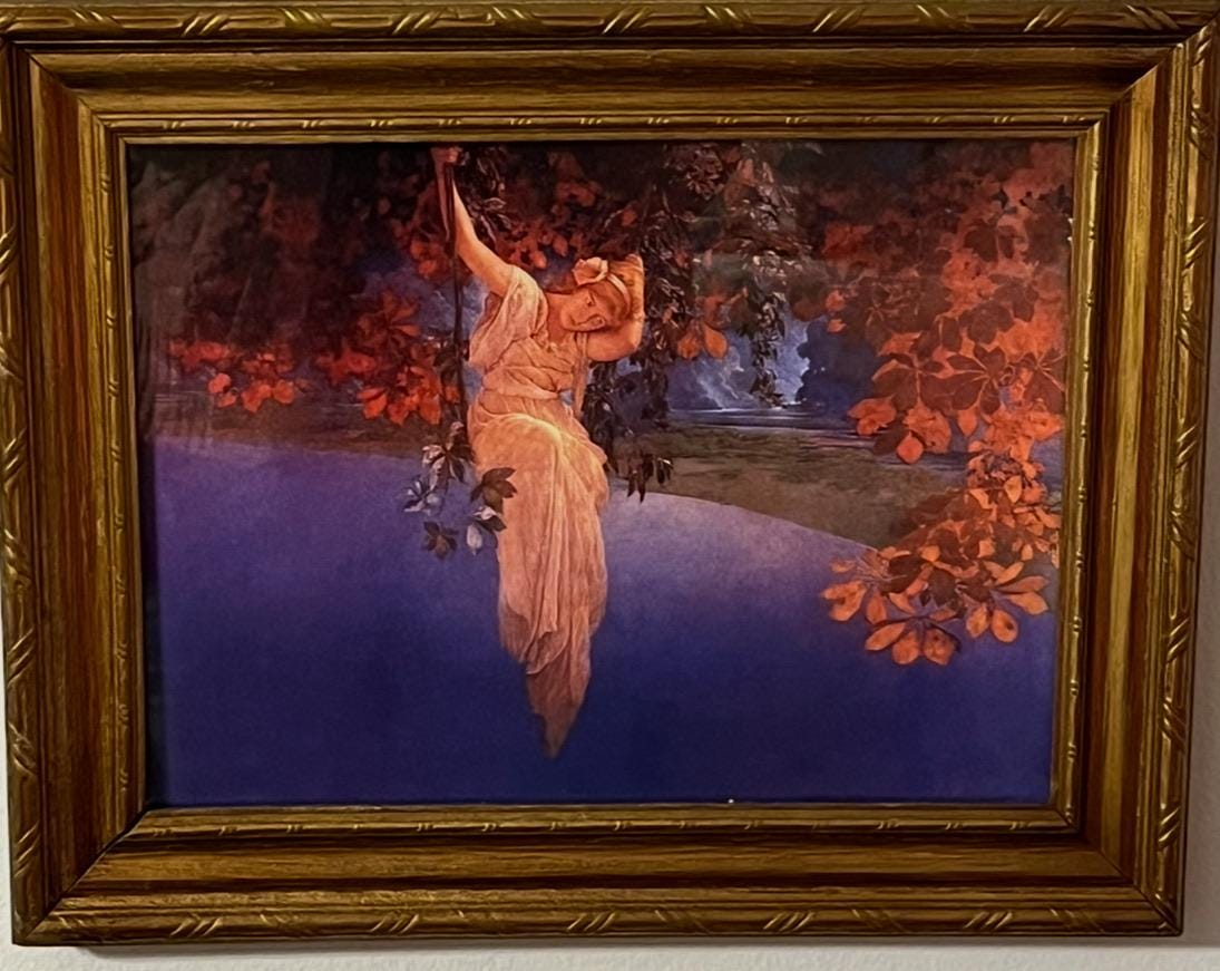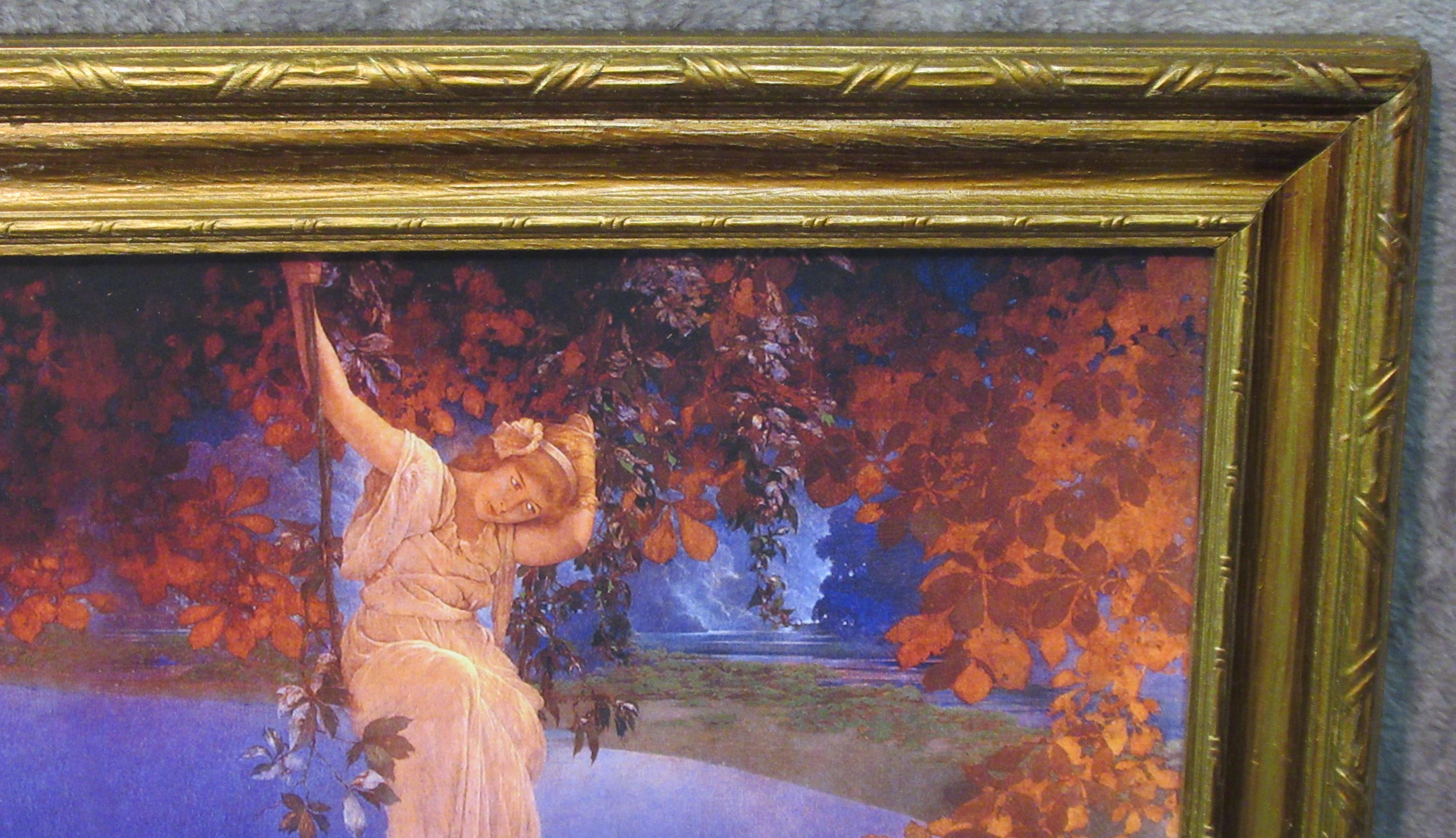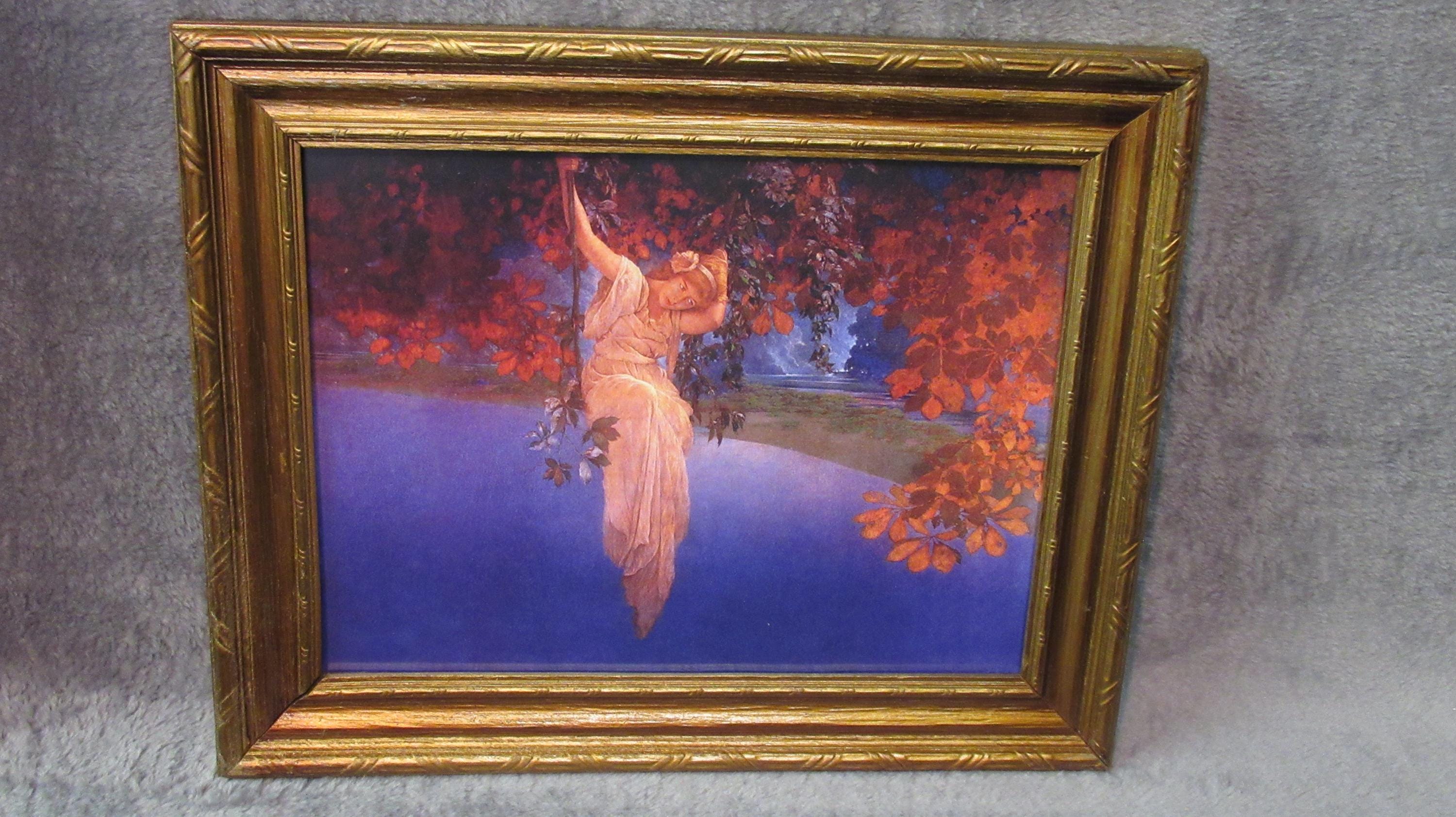 This is part of a 4 piece Parrish collection of estate lithos and deco frames,, havent had a Reveries for awhile, this is a nice one ! great color . good size / probably mid century not from new magazine or calendar .. 12 x 9