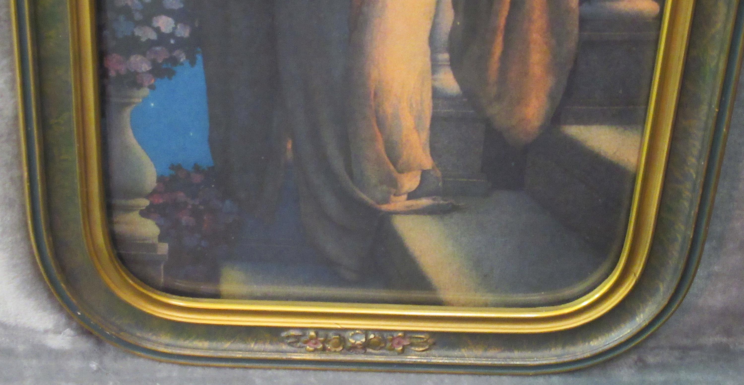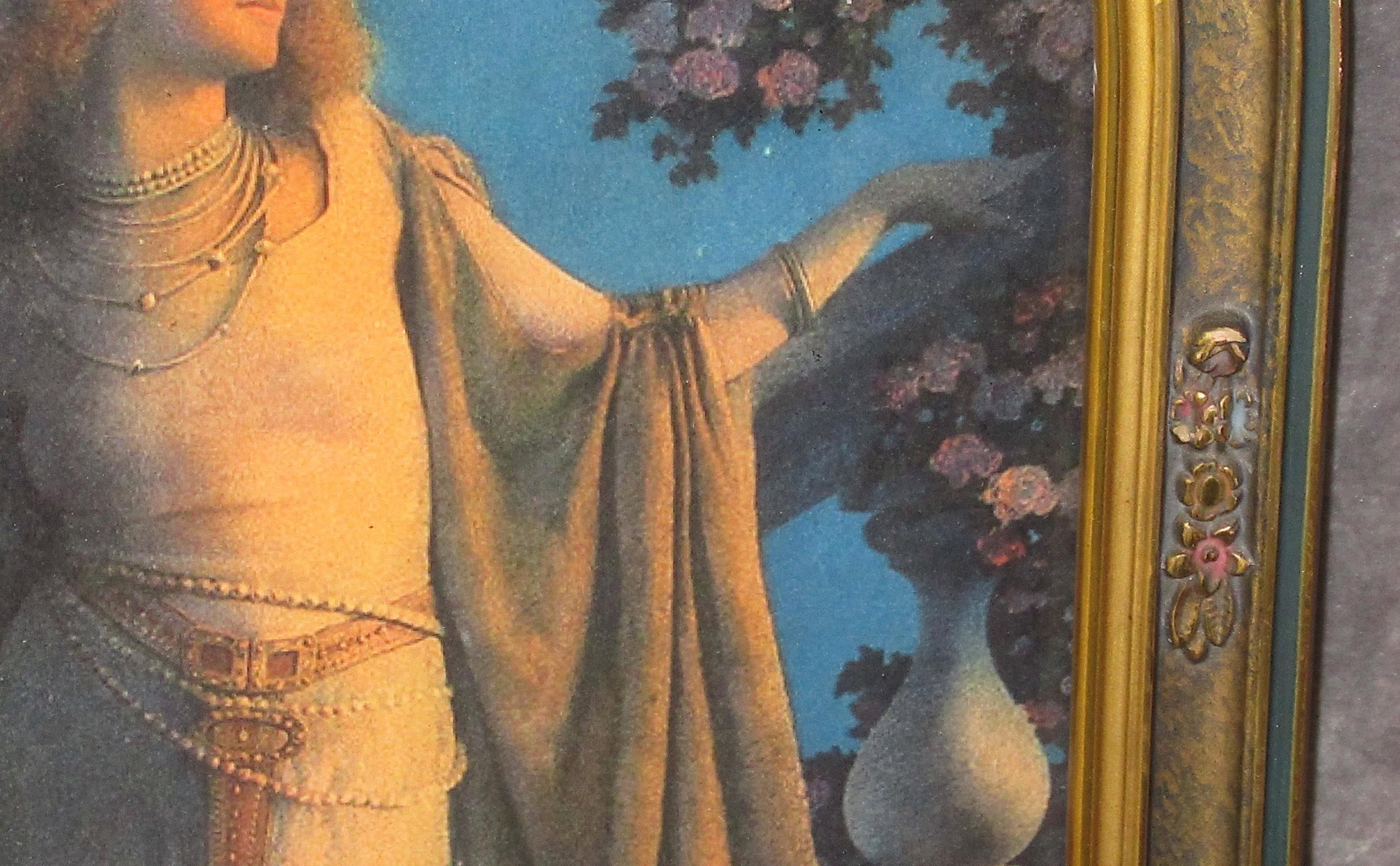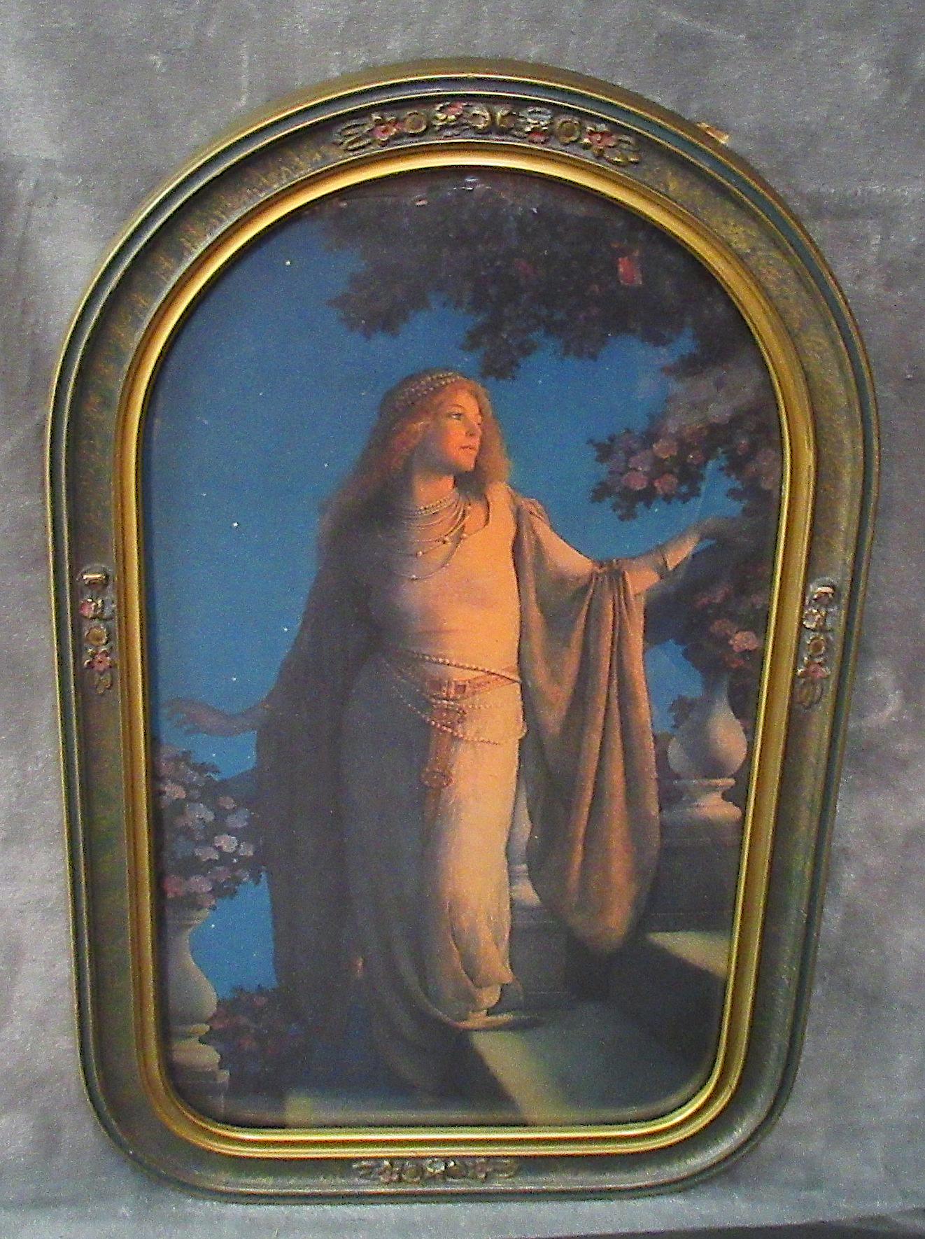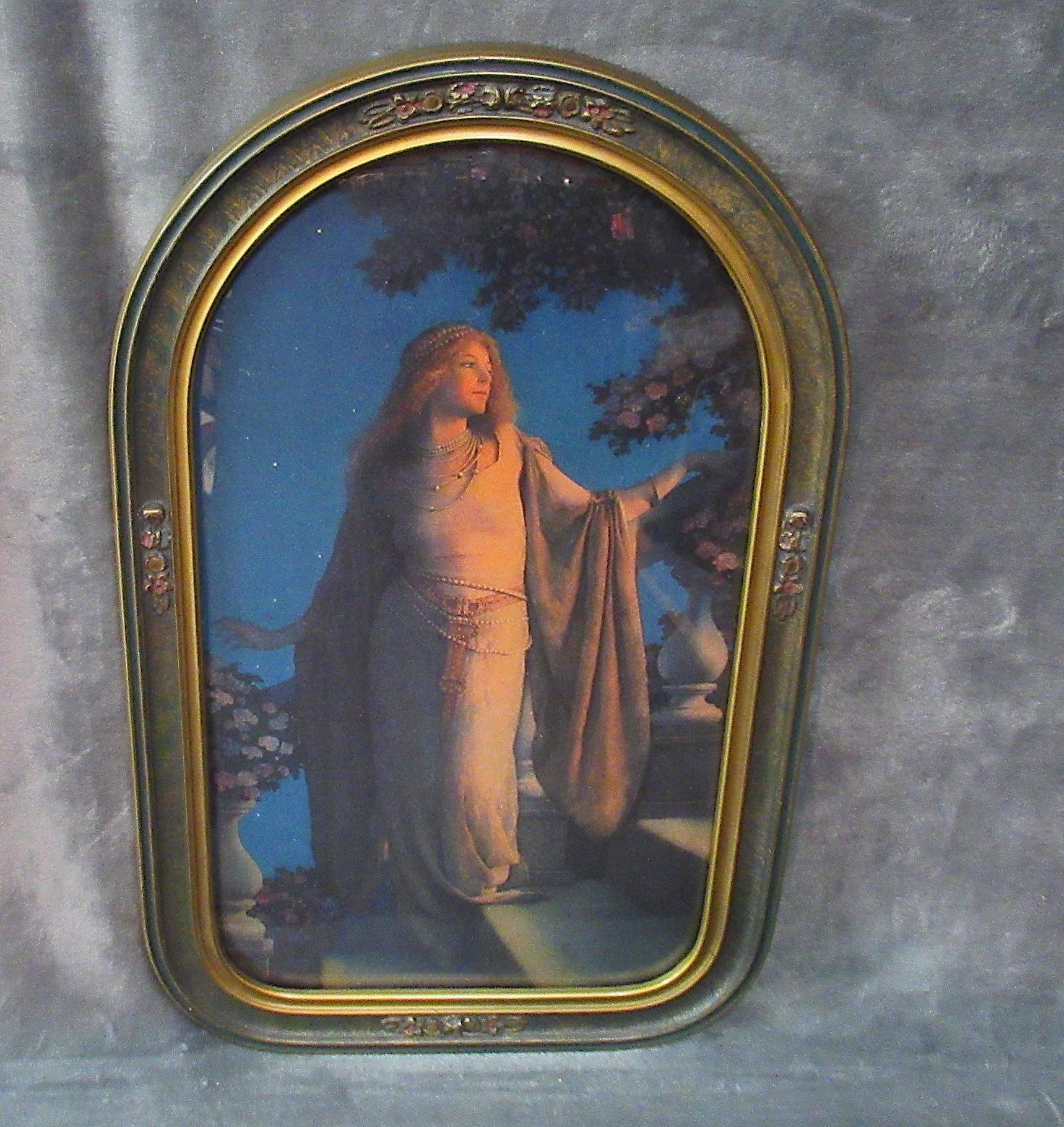 Maxfield Parrish Print, Unique Antique Frame, larger size 14 x 21.5 / Beautiful antique oval frame with original glass. The frame is in excellent condition,