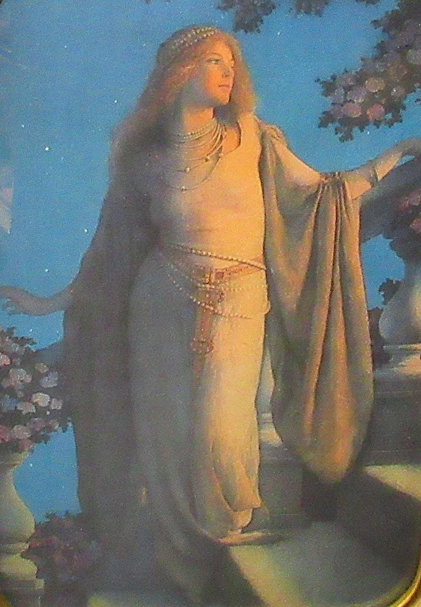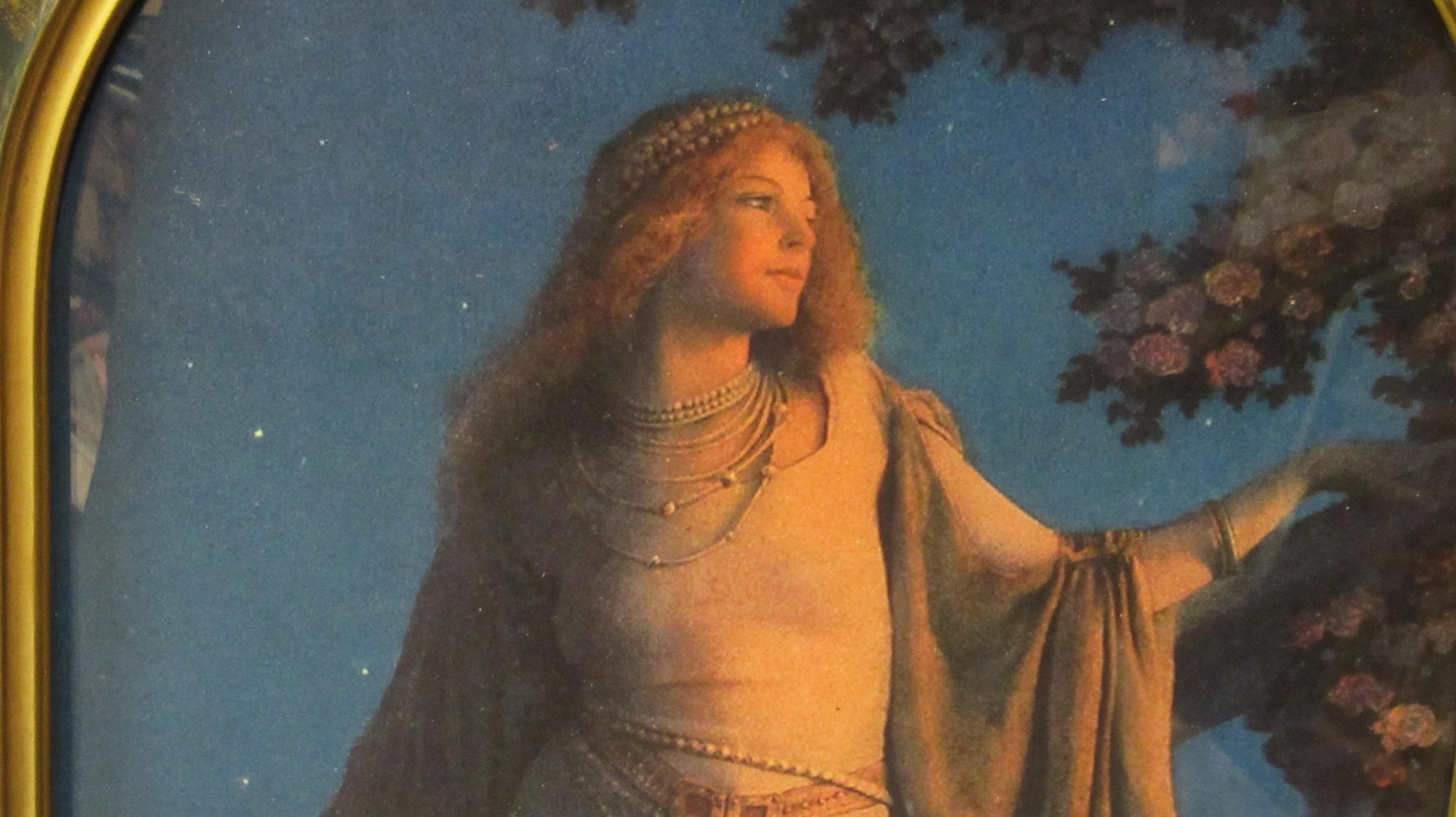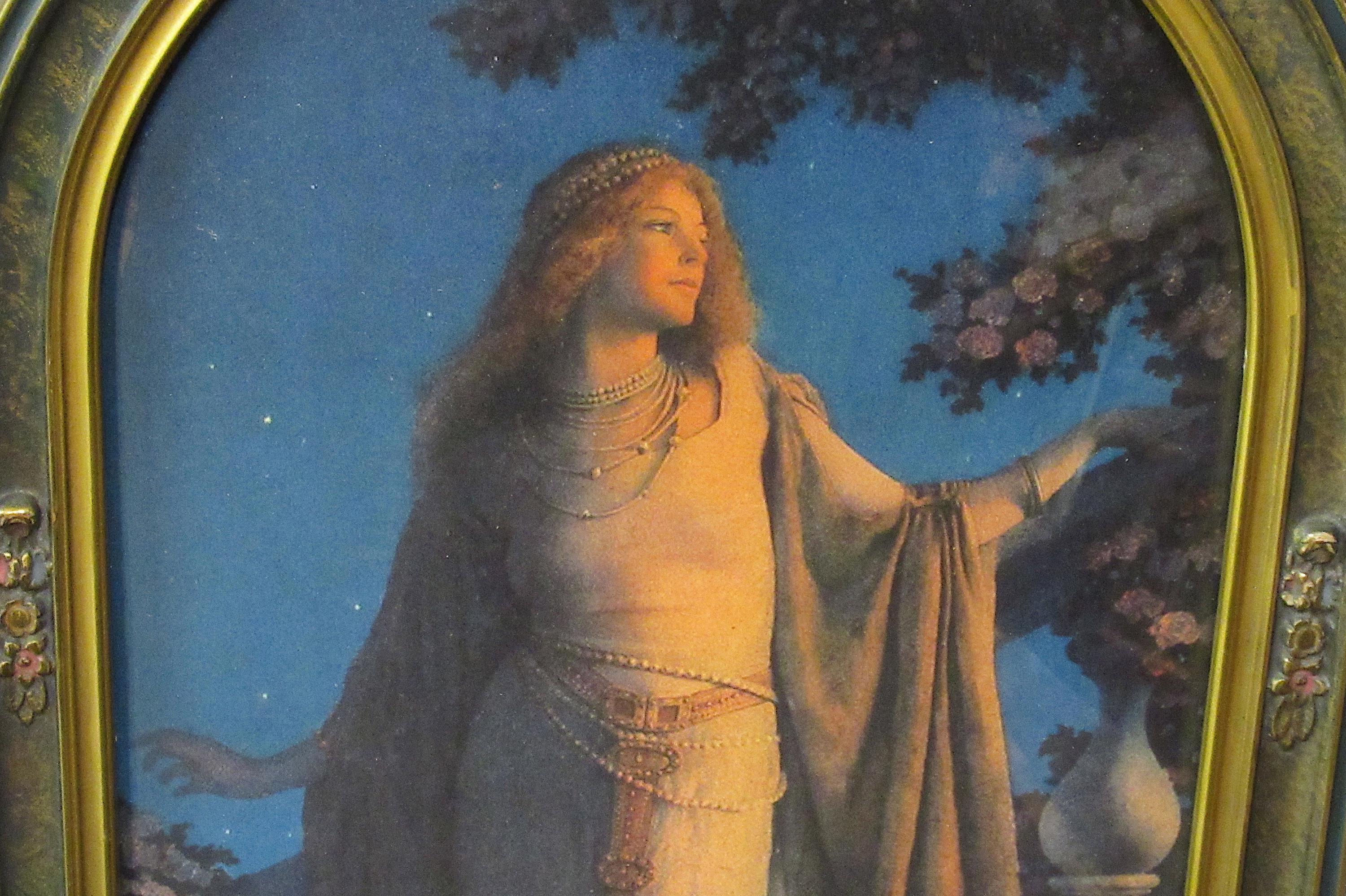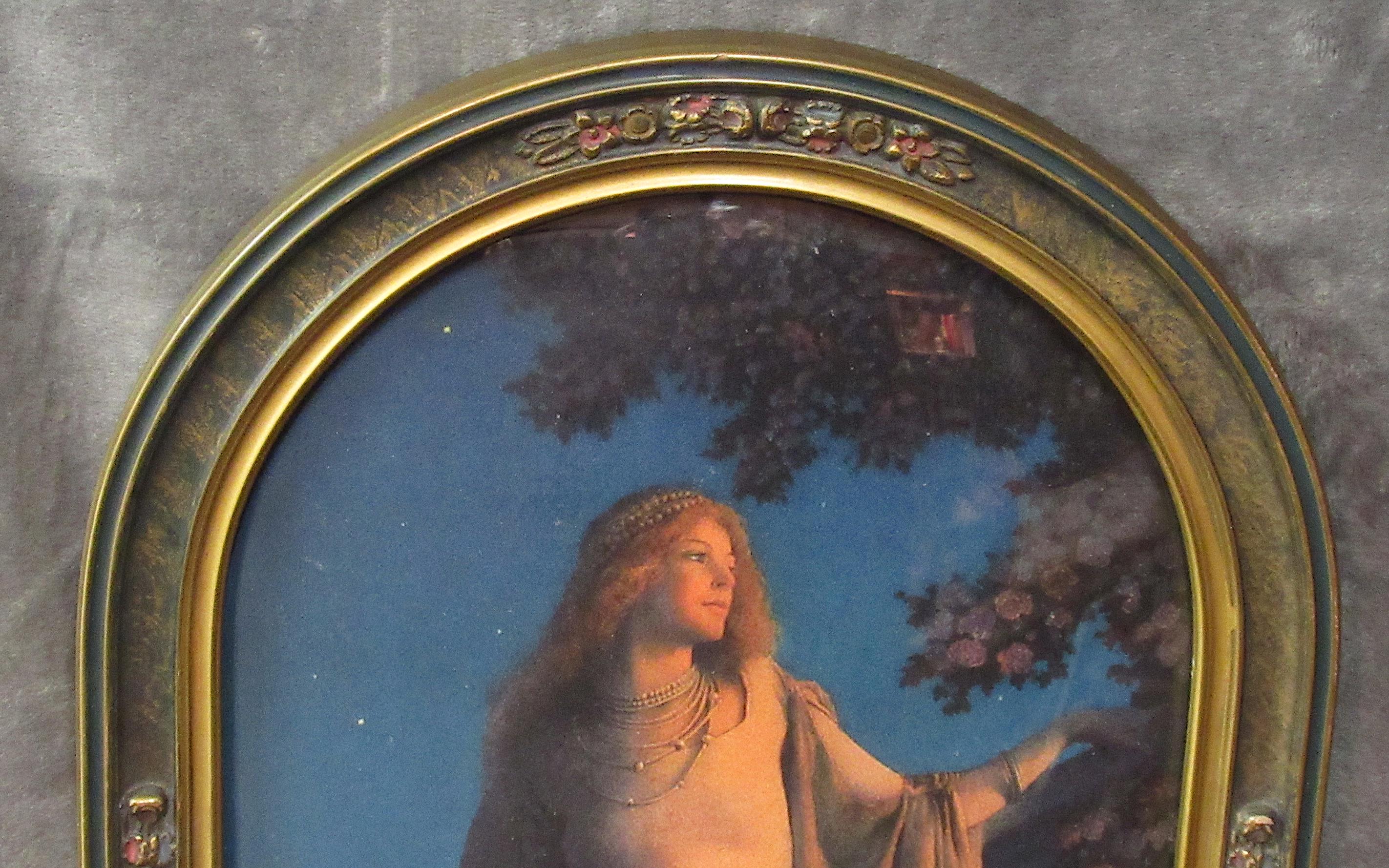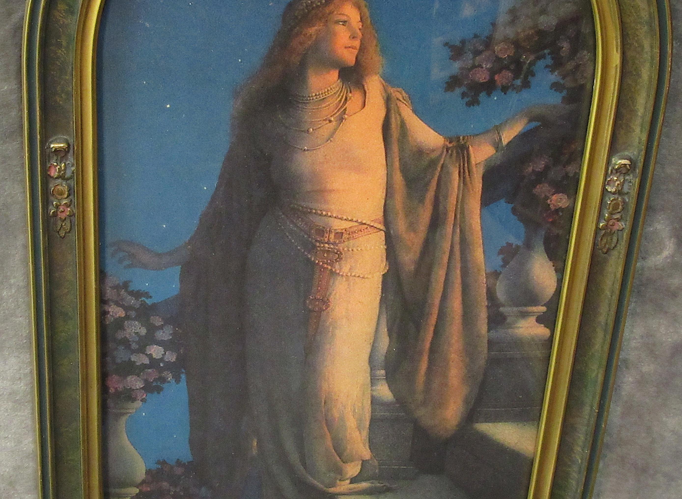 Maxfield Parrish Print, Unique Antique Frame, larger size 14 x 21.5 / Beautiful antique oval frame with original glass. The frame is in excellent condition,
