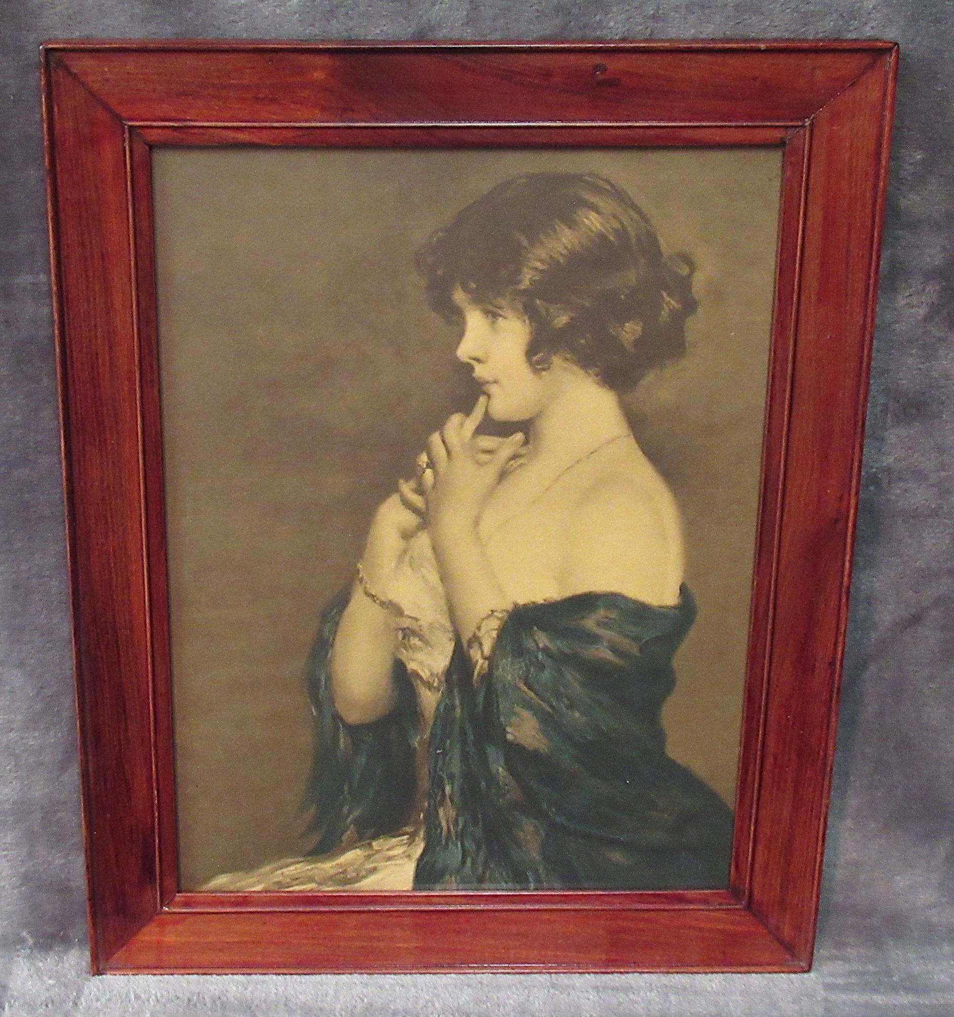 Antique Art Print in Solid Wood Antique/Vintage Frame, original finish / Nice condition /