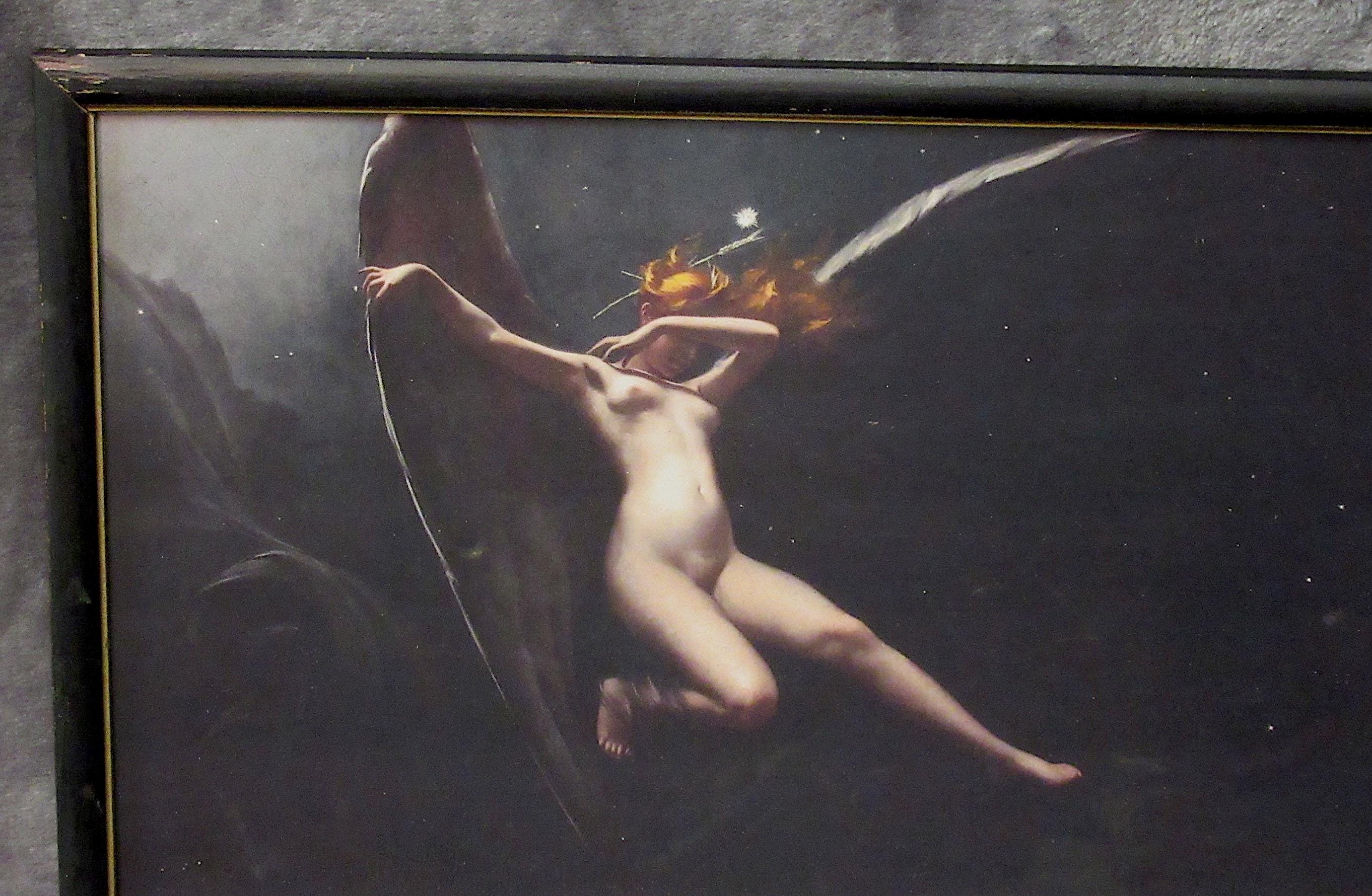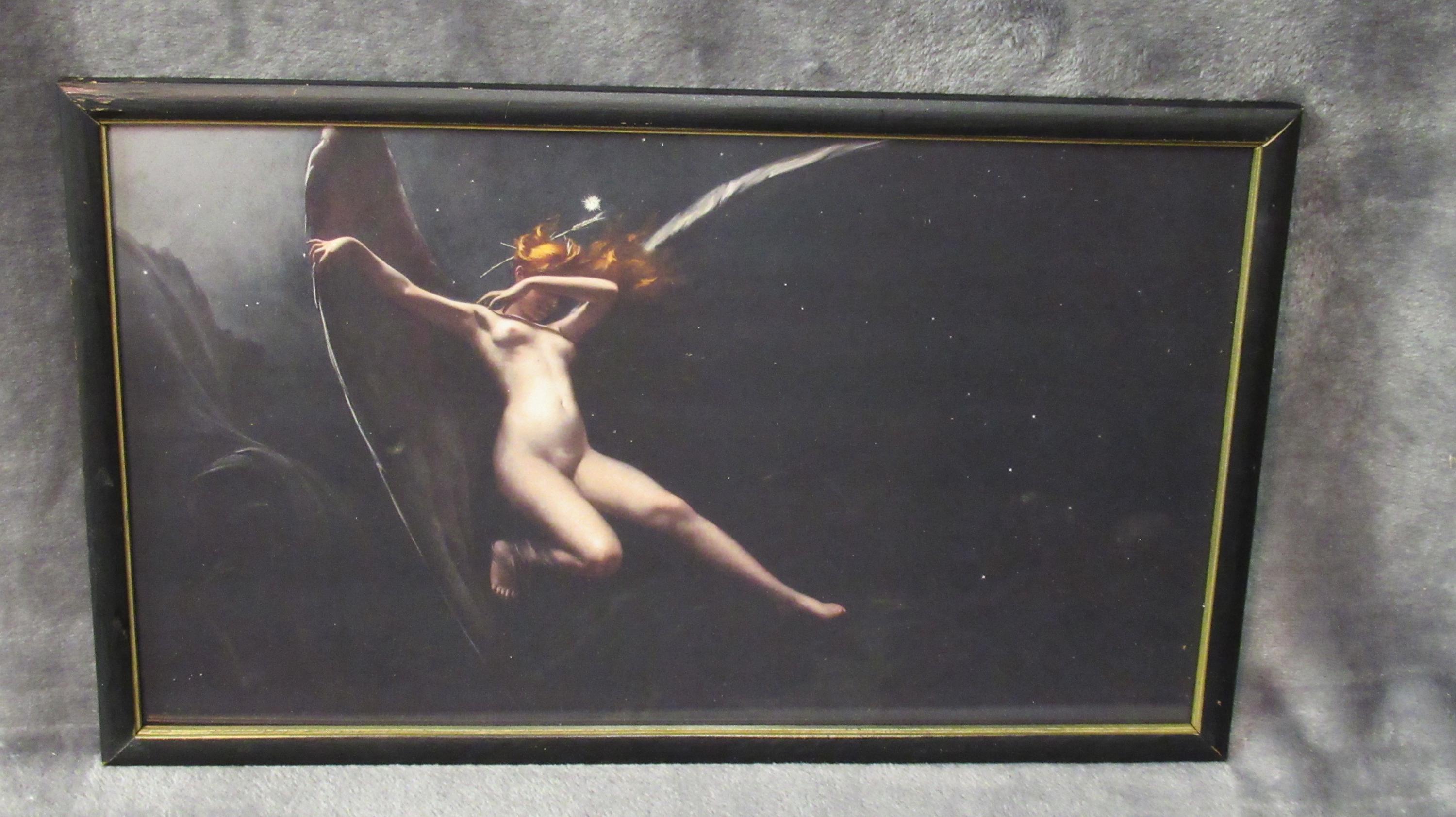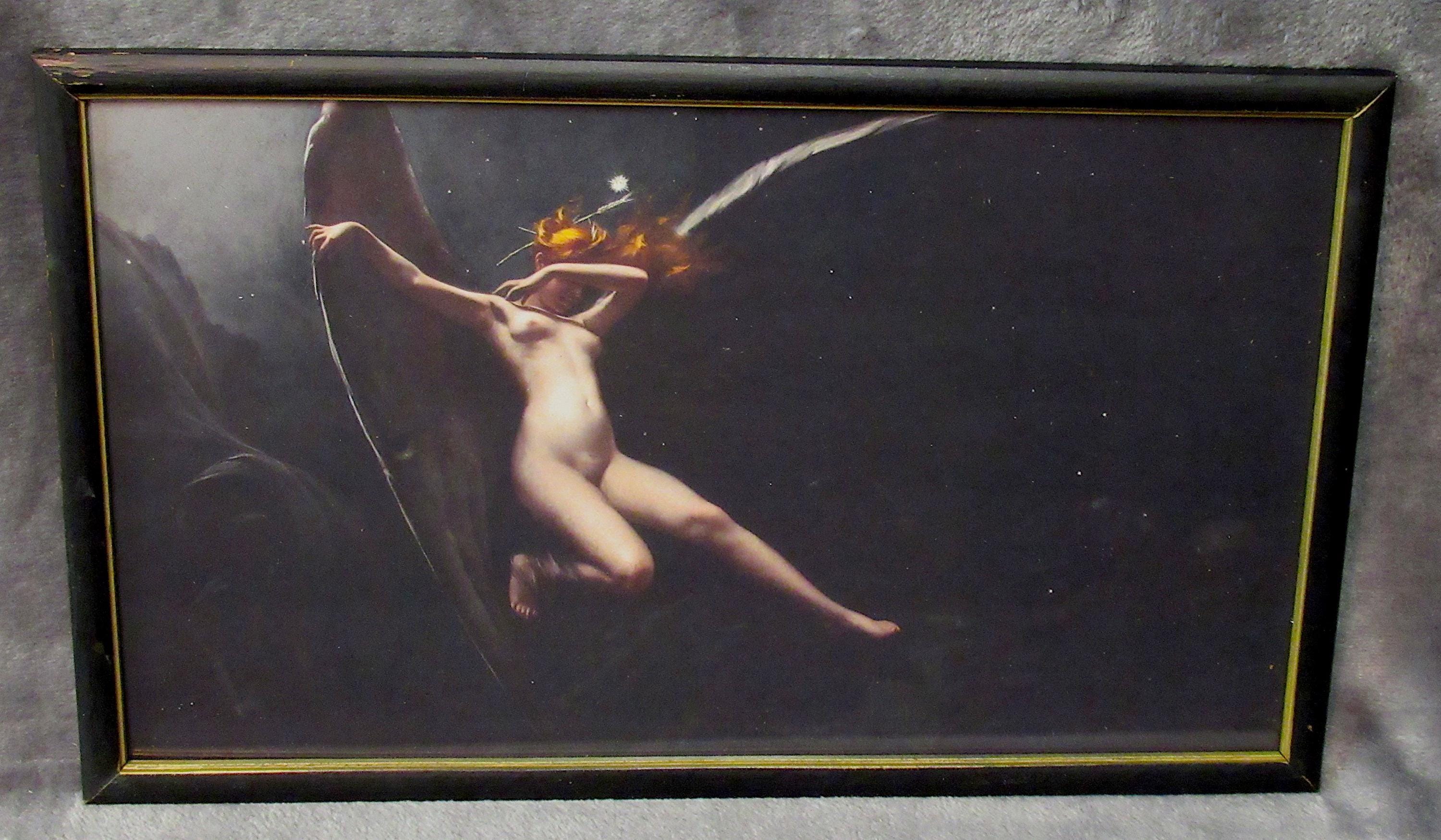Luis Falero 1851 to 1896 / Great art print of one of his unusual works. brilliant detail, mid century frame.