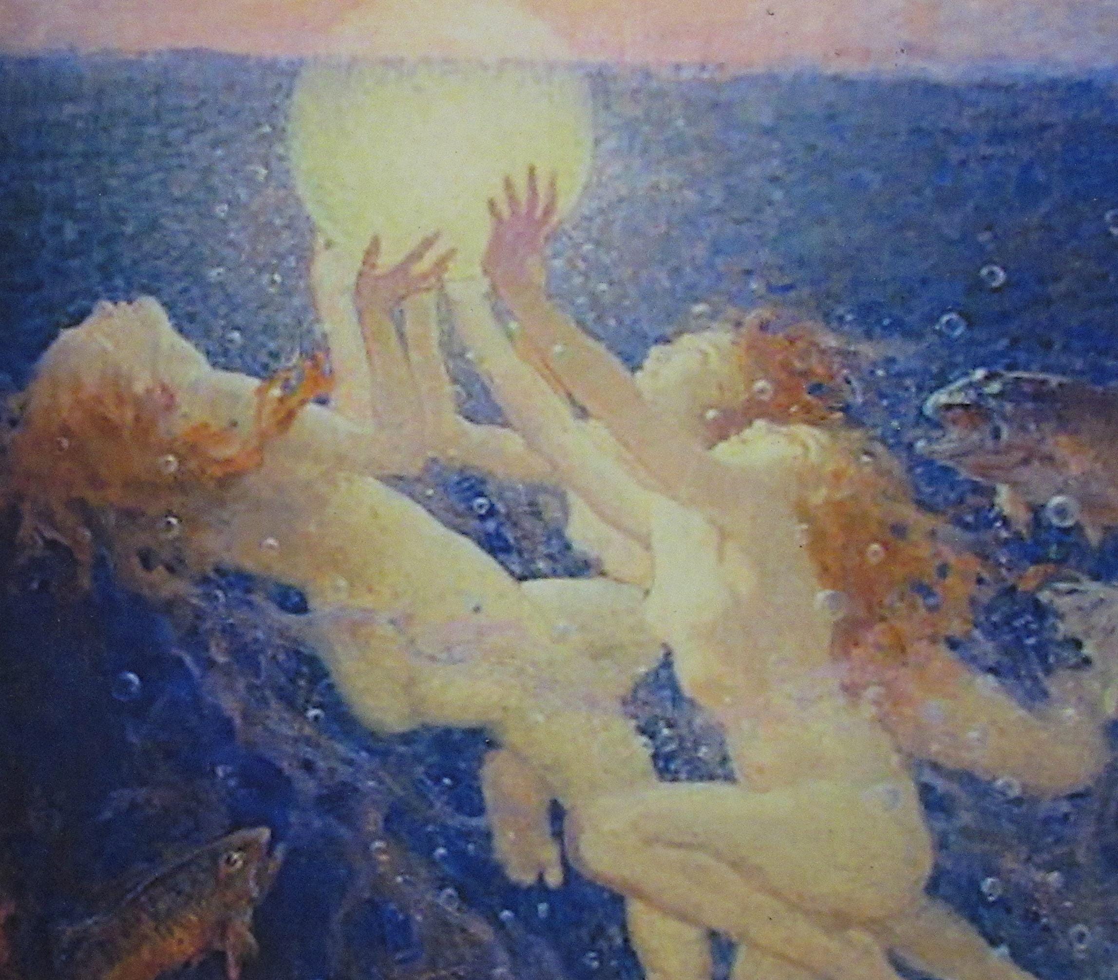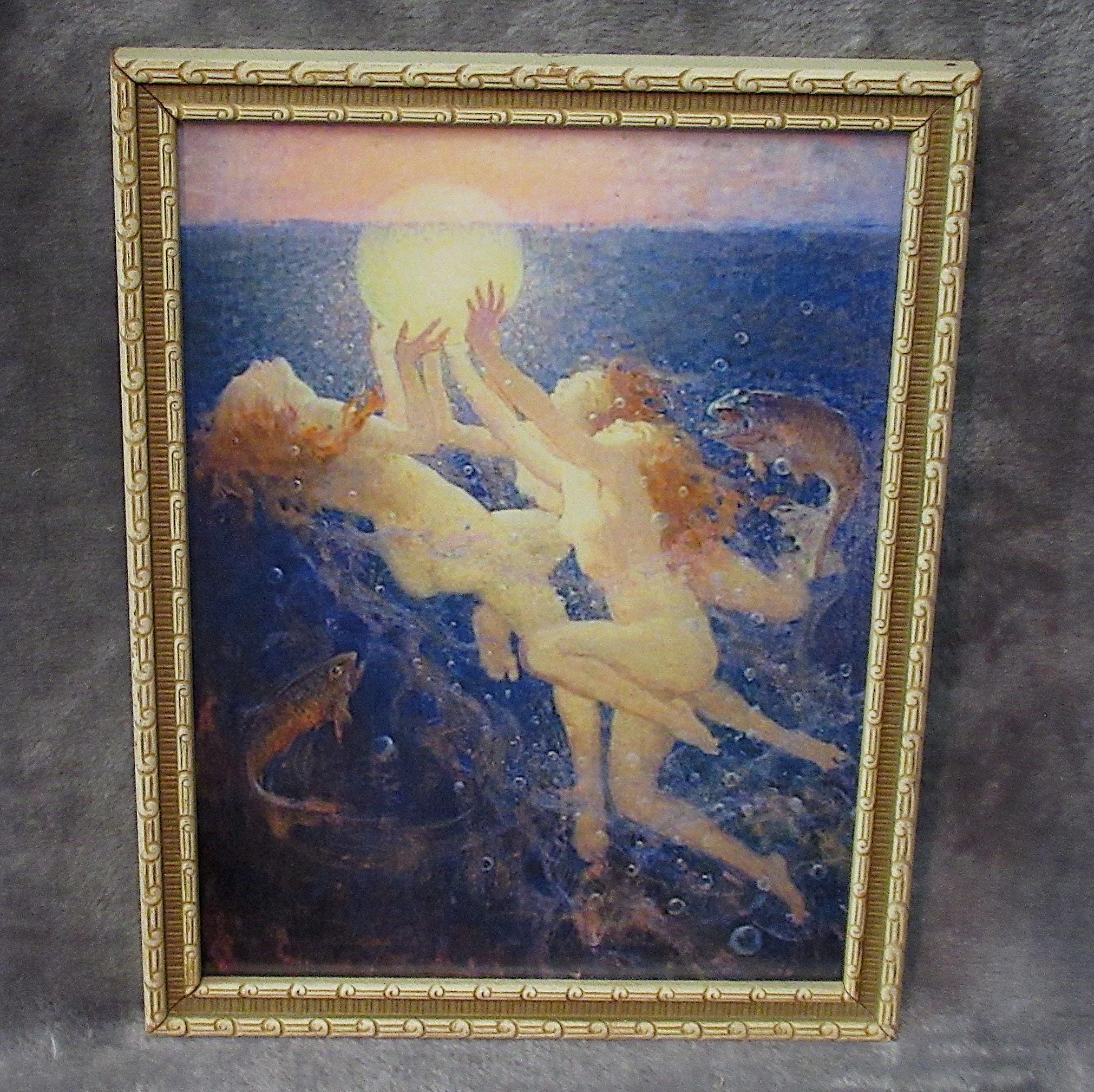 Mermaid, Arthur Price Spears Color "Sunrise" in Vintage Nice Frame , Approx. 9.5 x 6.