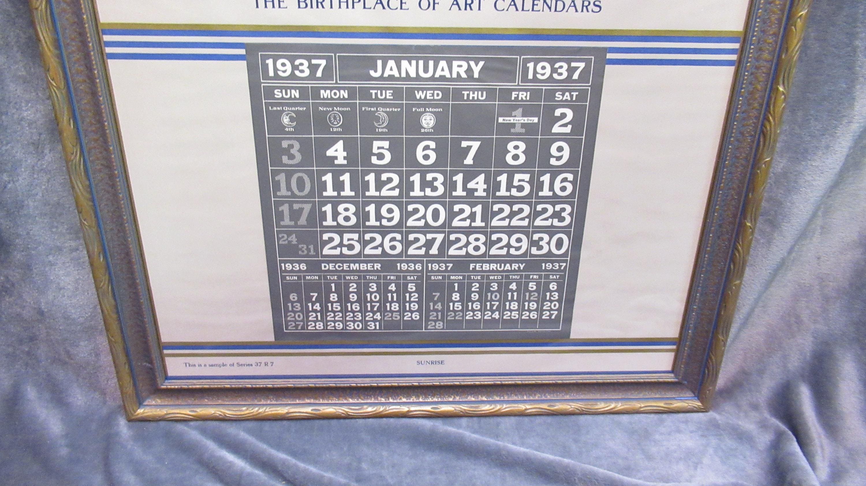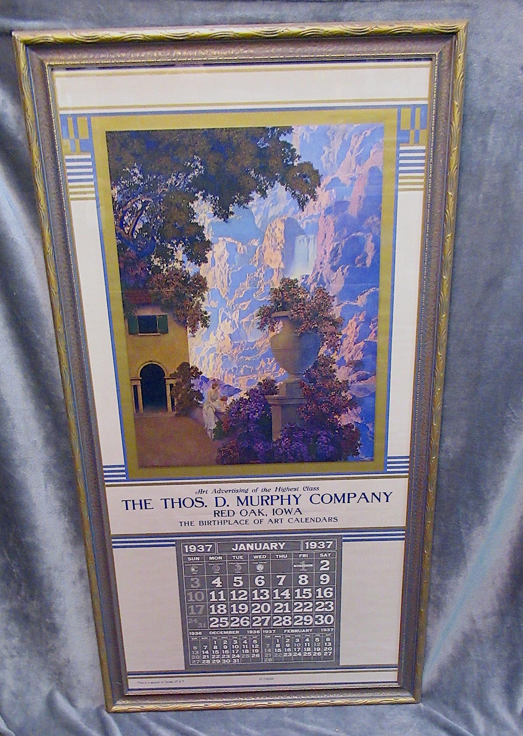 Maxfield Parrish Original Calendar Printed 1937 . Excellent vintage/antique frame, Unique Rare Printing Proof .
