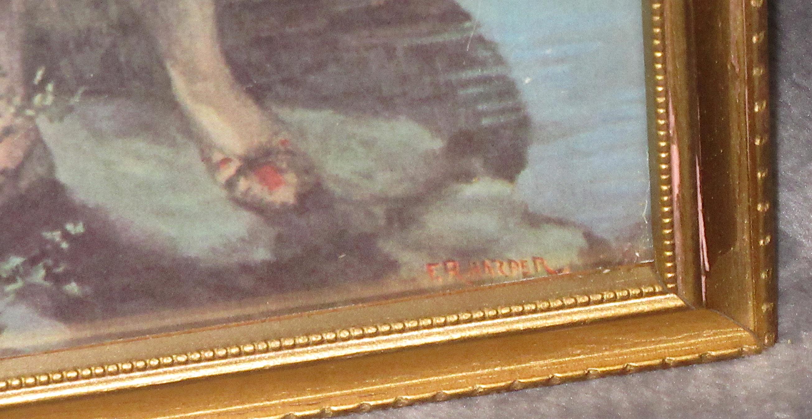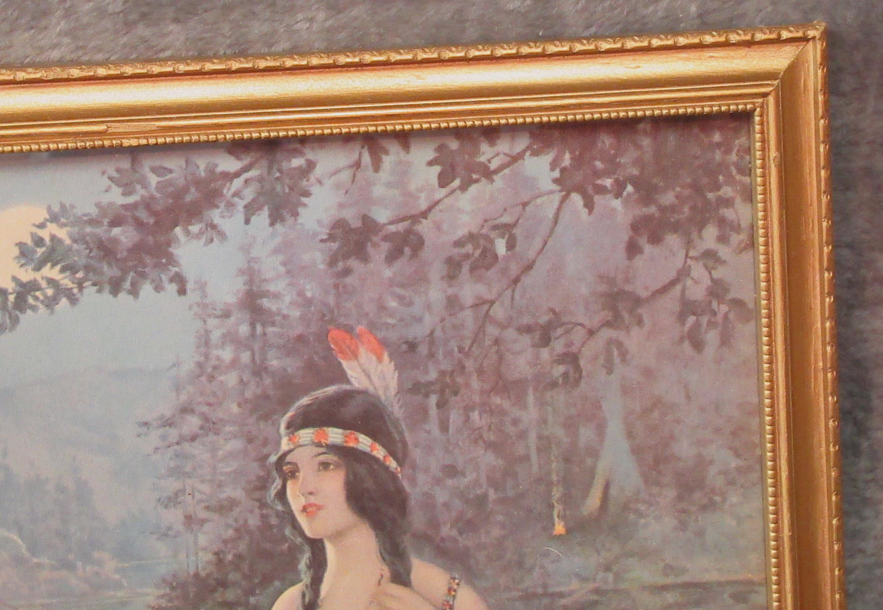 Antique Indian Maiden Art Print, definatly earlier printing on light textured print/ in Solid Wood Frame, good finish / Super condition / larger, approx. size 12 X 16.5 / part of two piece estate
