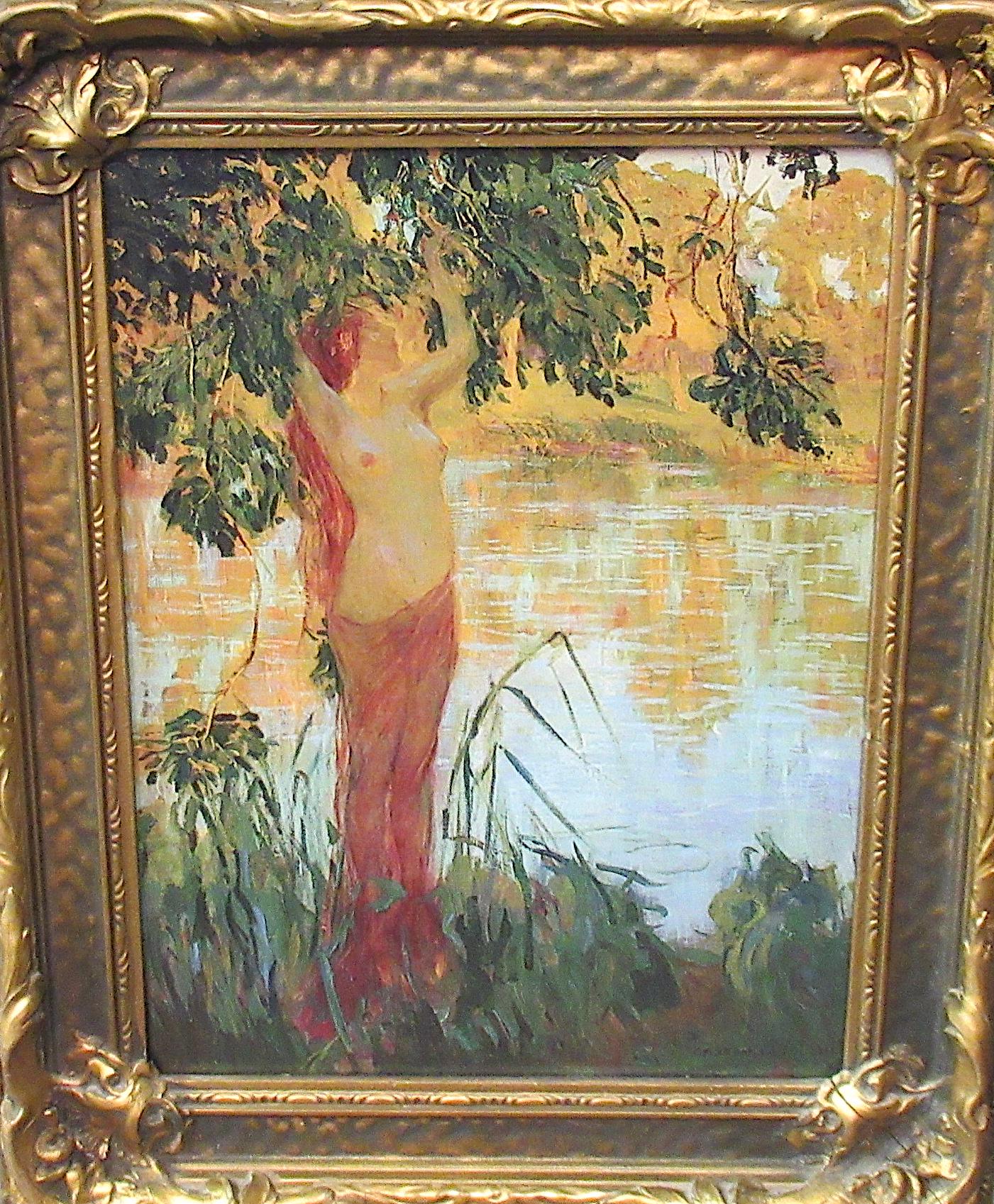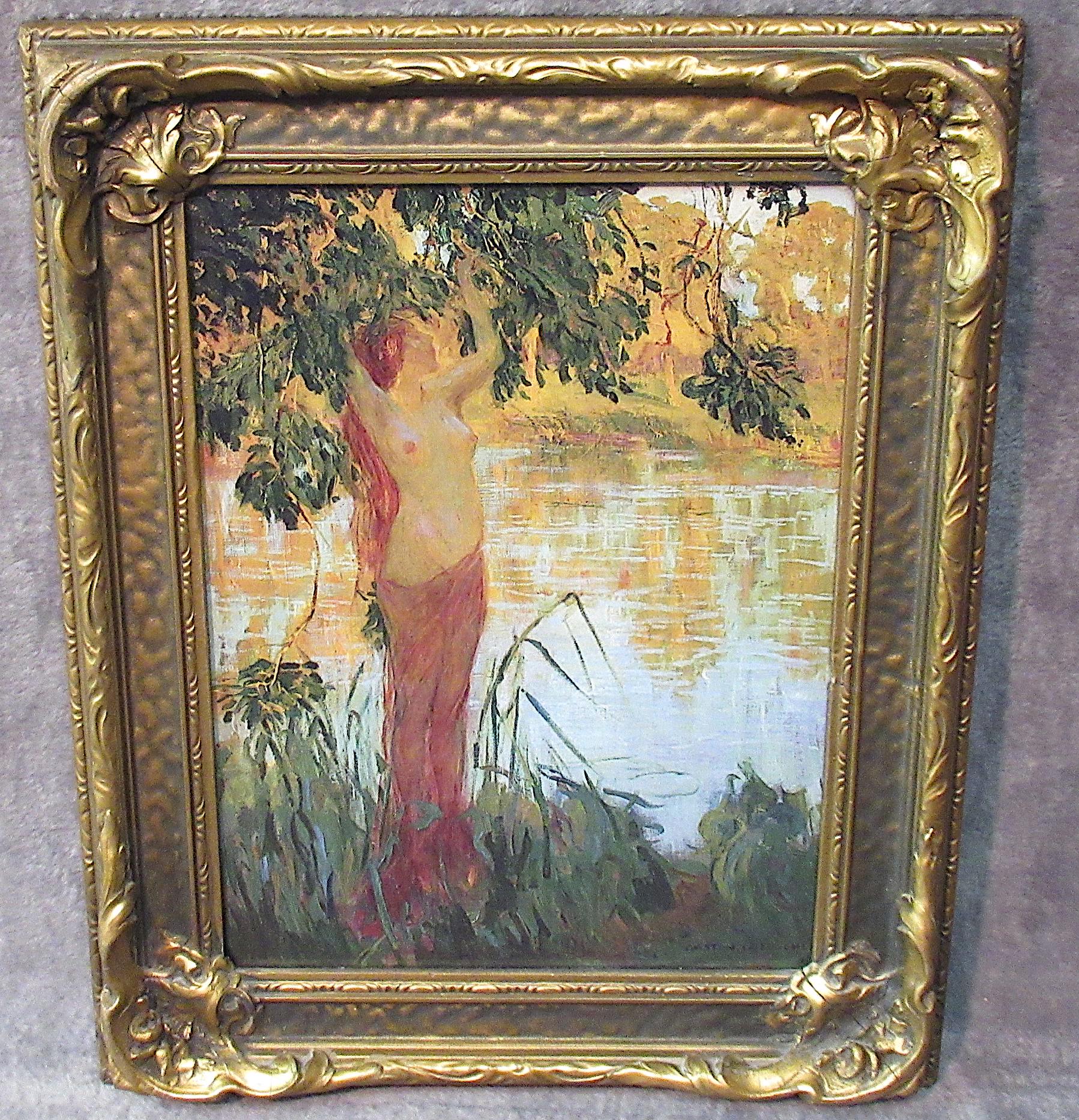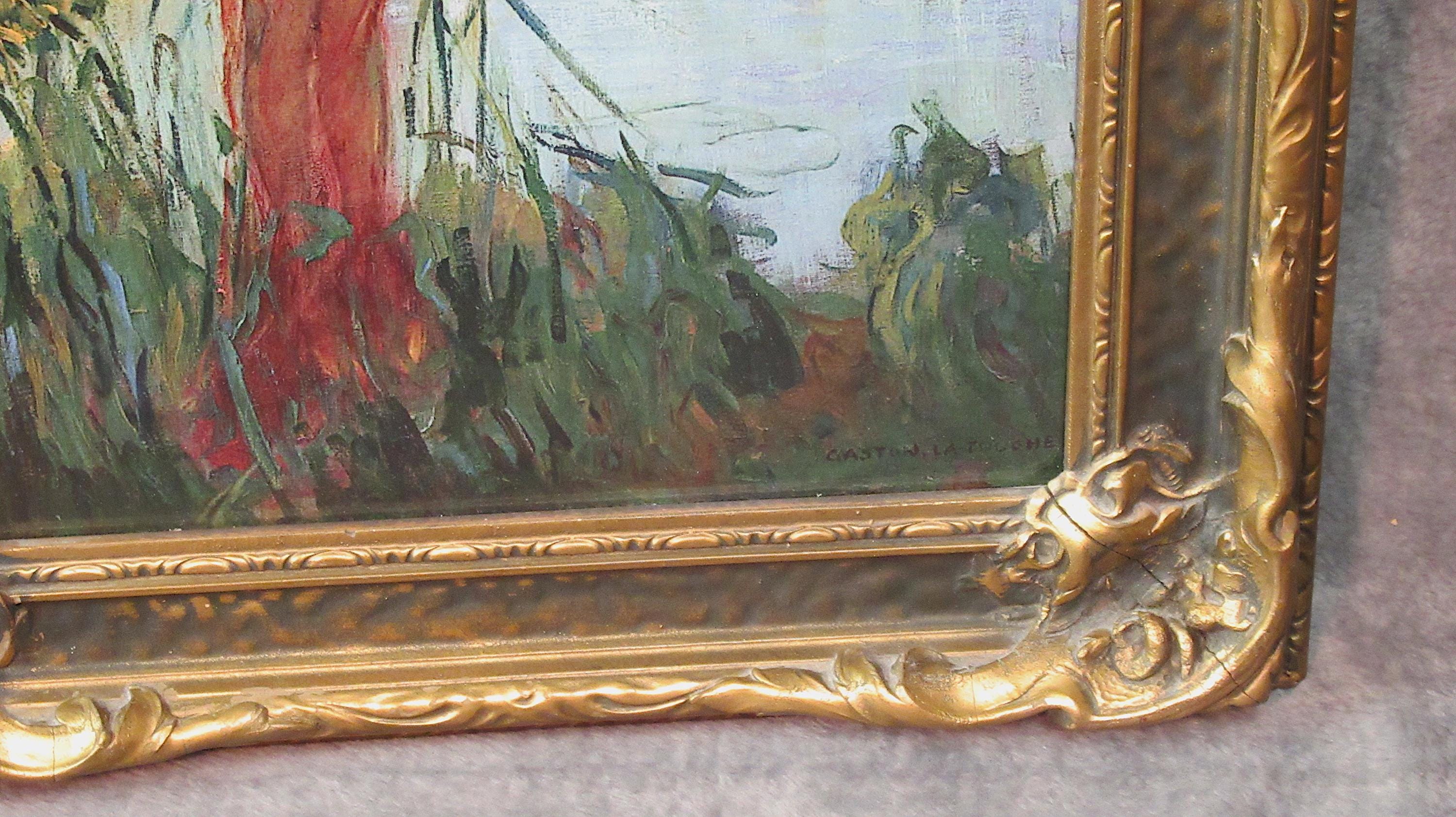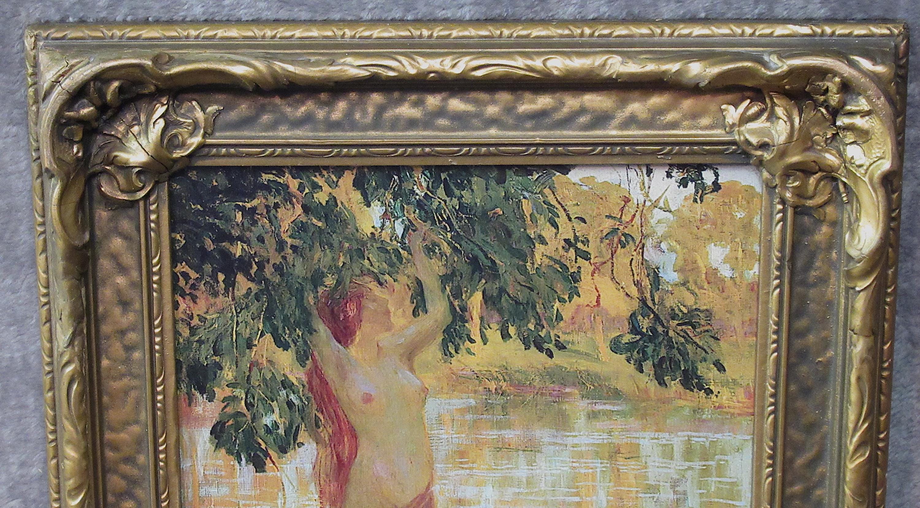 Beautiful condition, this stunning early antique picture frame with Gaston la Touche painting / Super detailed art print, signed = in antique frame, colors and detail are amazing / excellent condition / unique estate find
