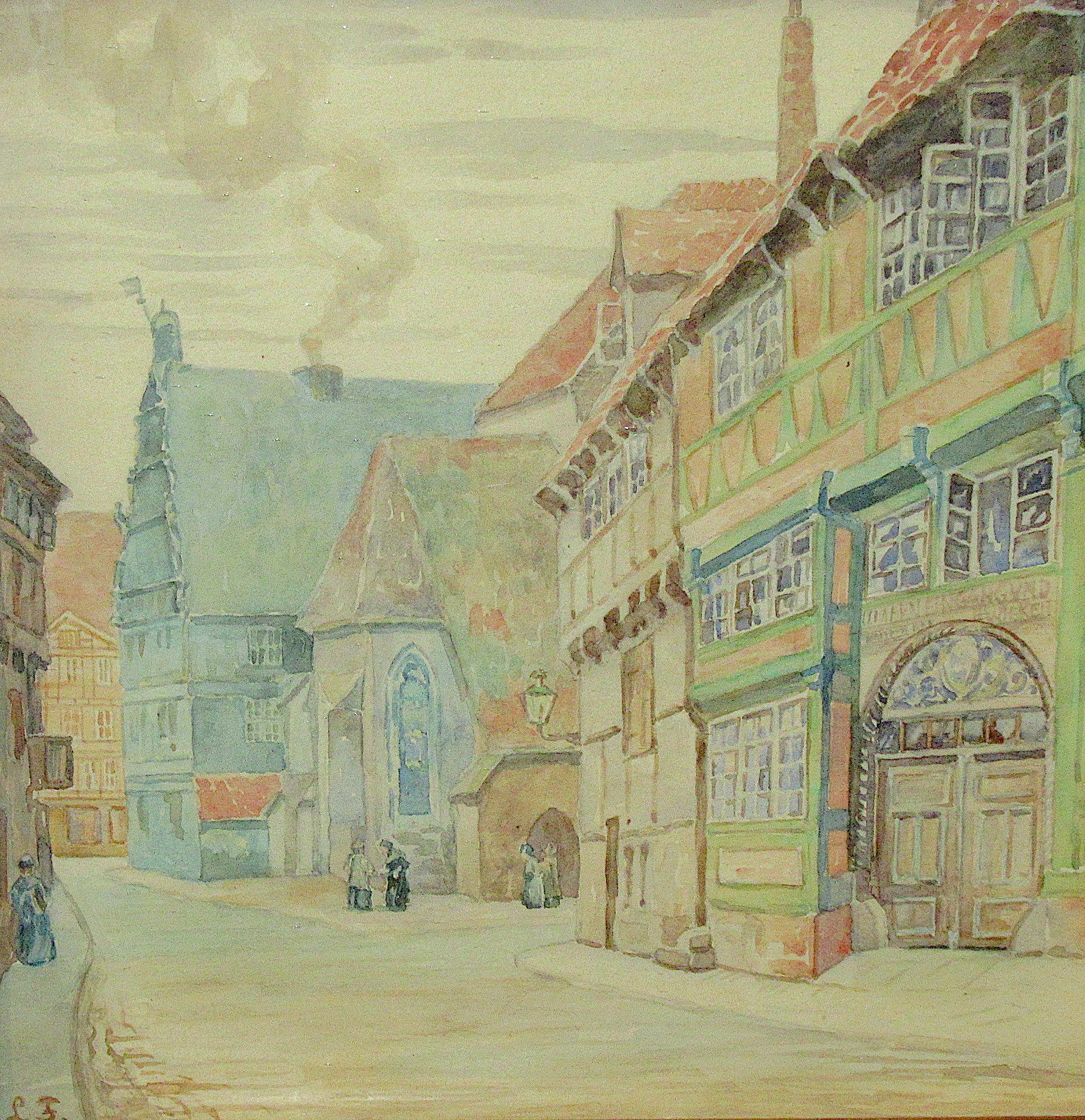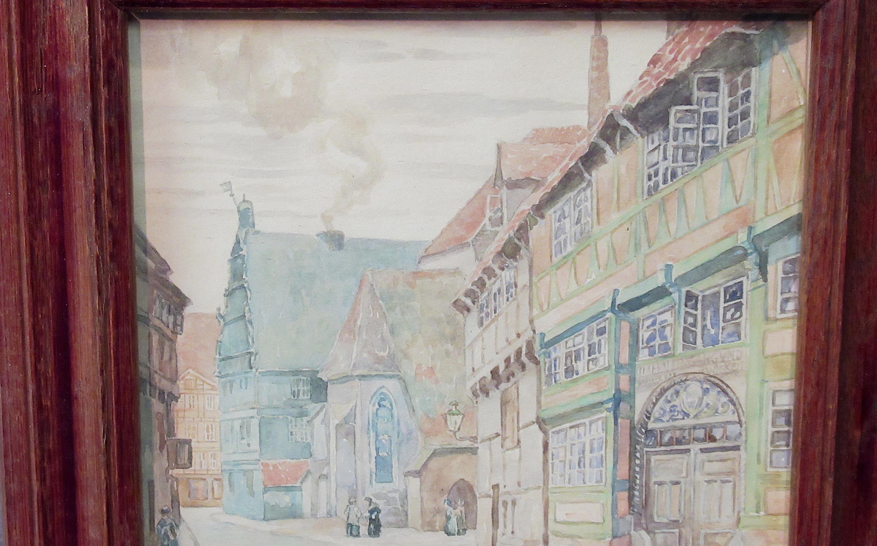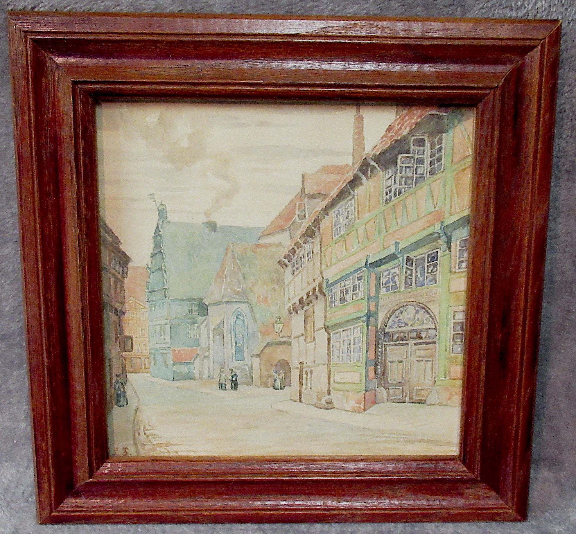 Original Hand Painted Art Early 1900s / Excellent Quality Work in perfect condition / Village Street, Check out the detail ! Vintage/ Antique frame,
