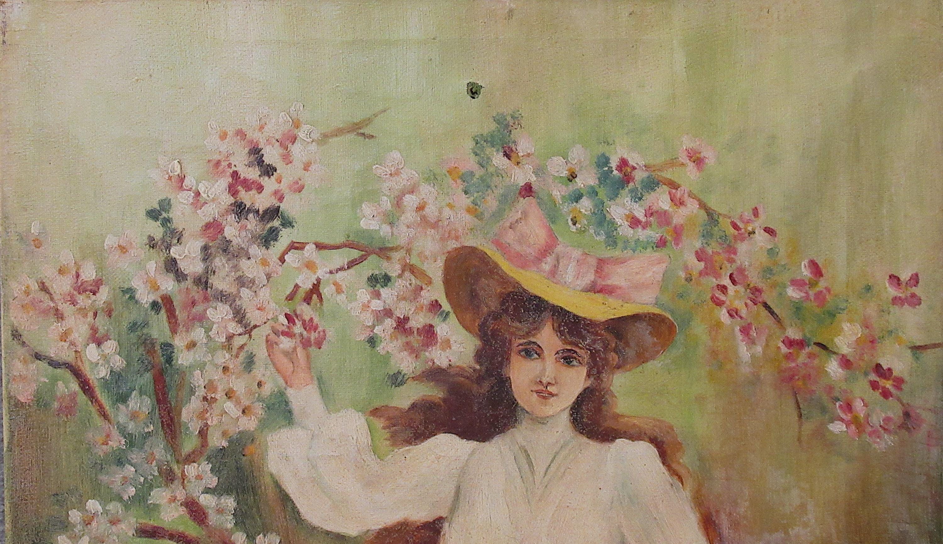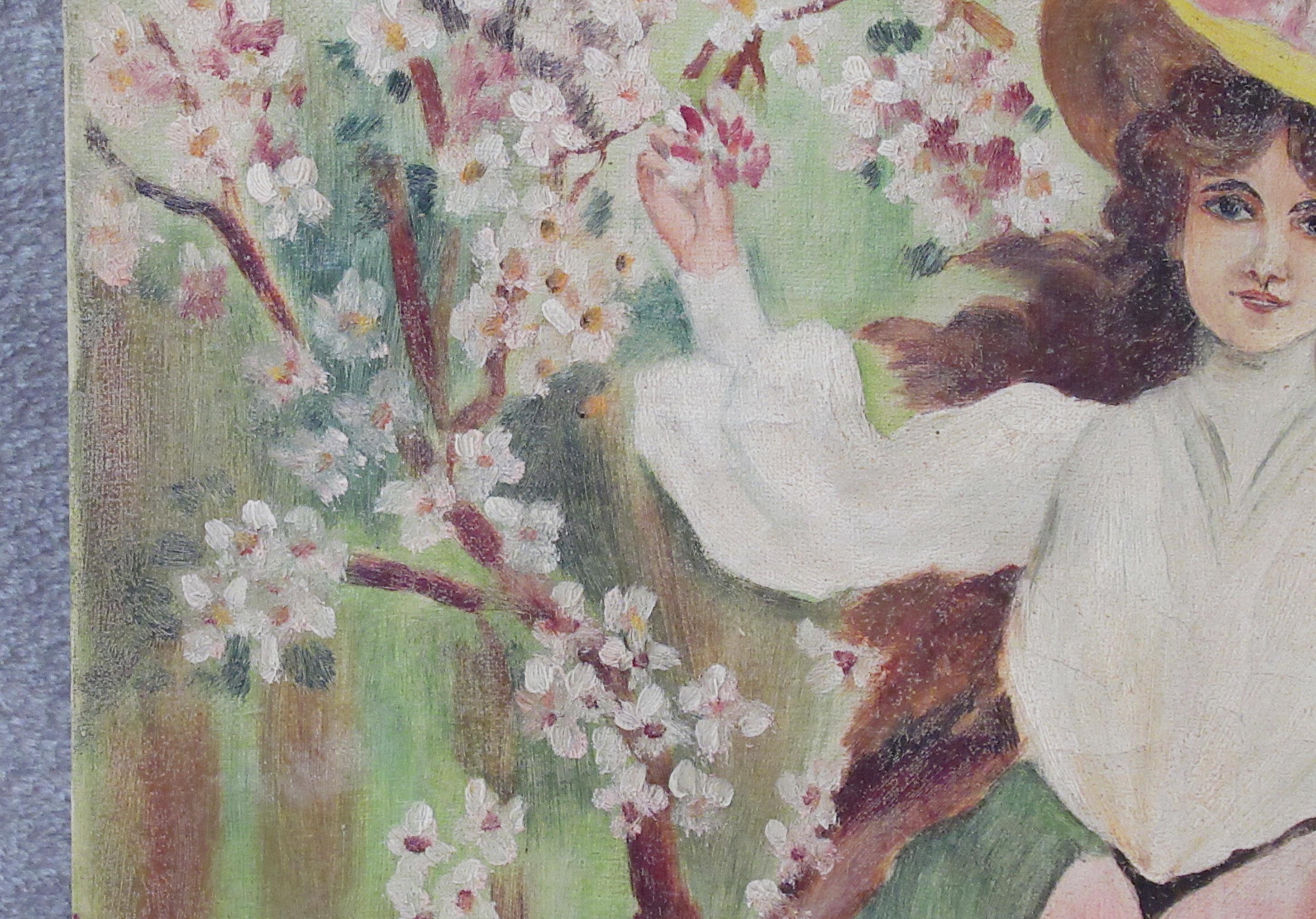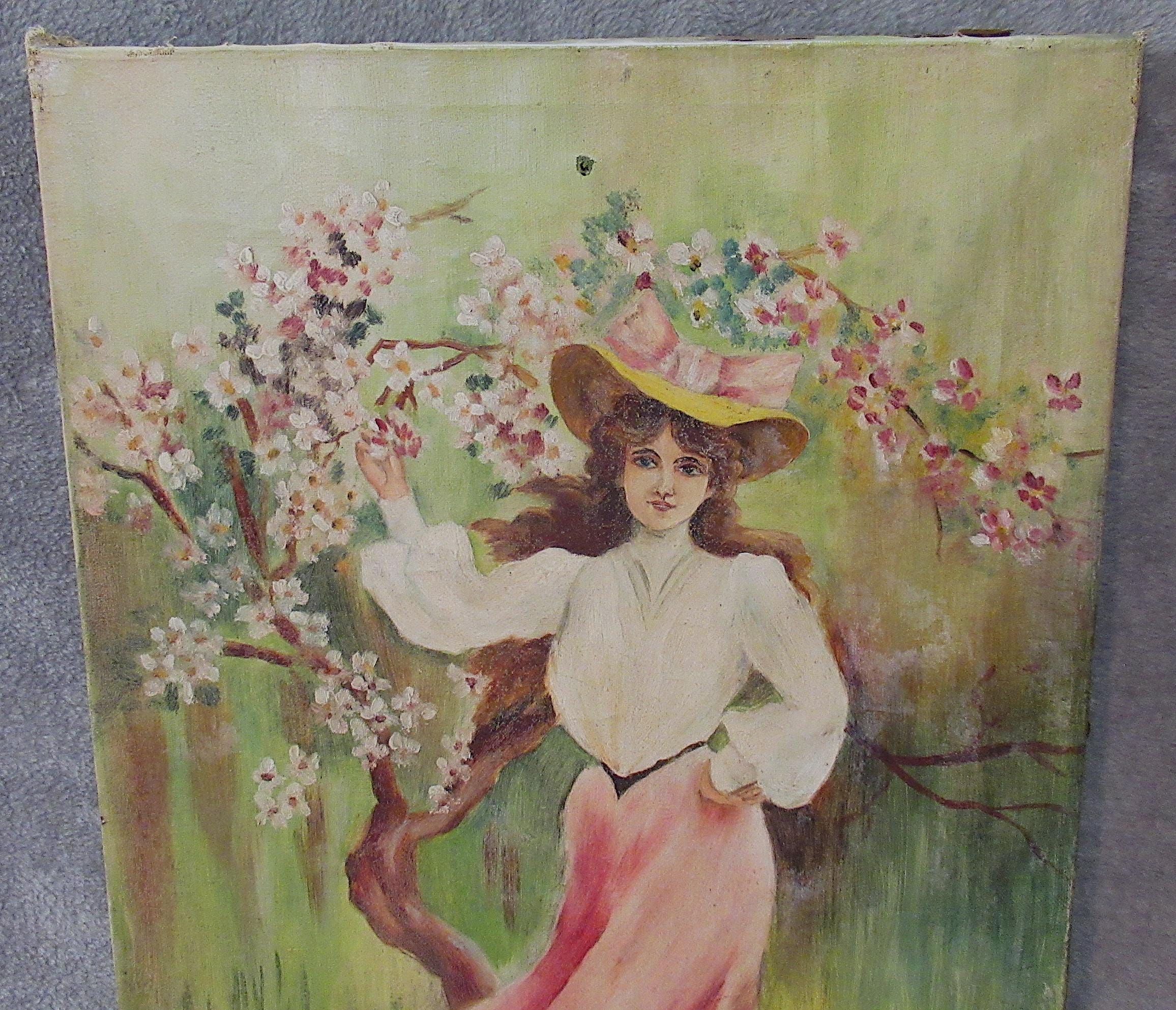 Very nice original painting of victorian beauty, well done, good detail, / minor 1/8inch hole center top, minor craquelure. Will frame nicely