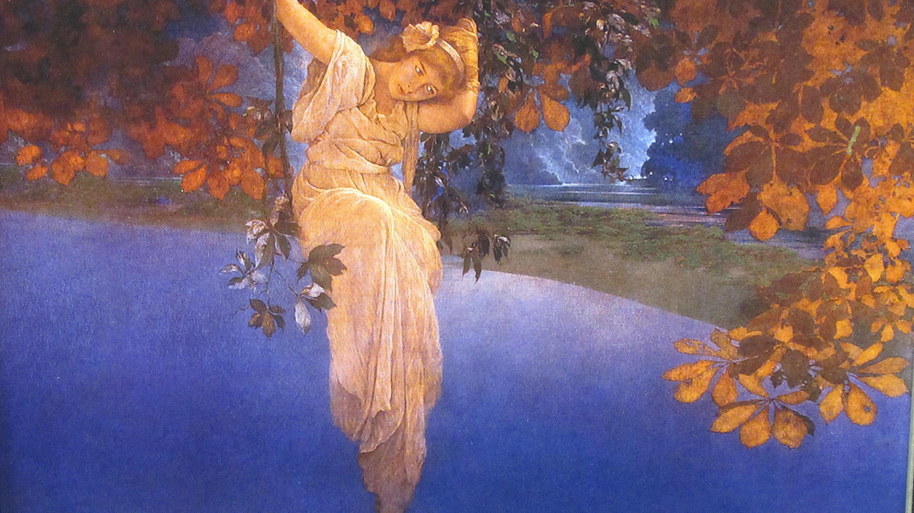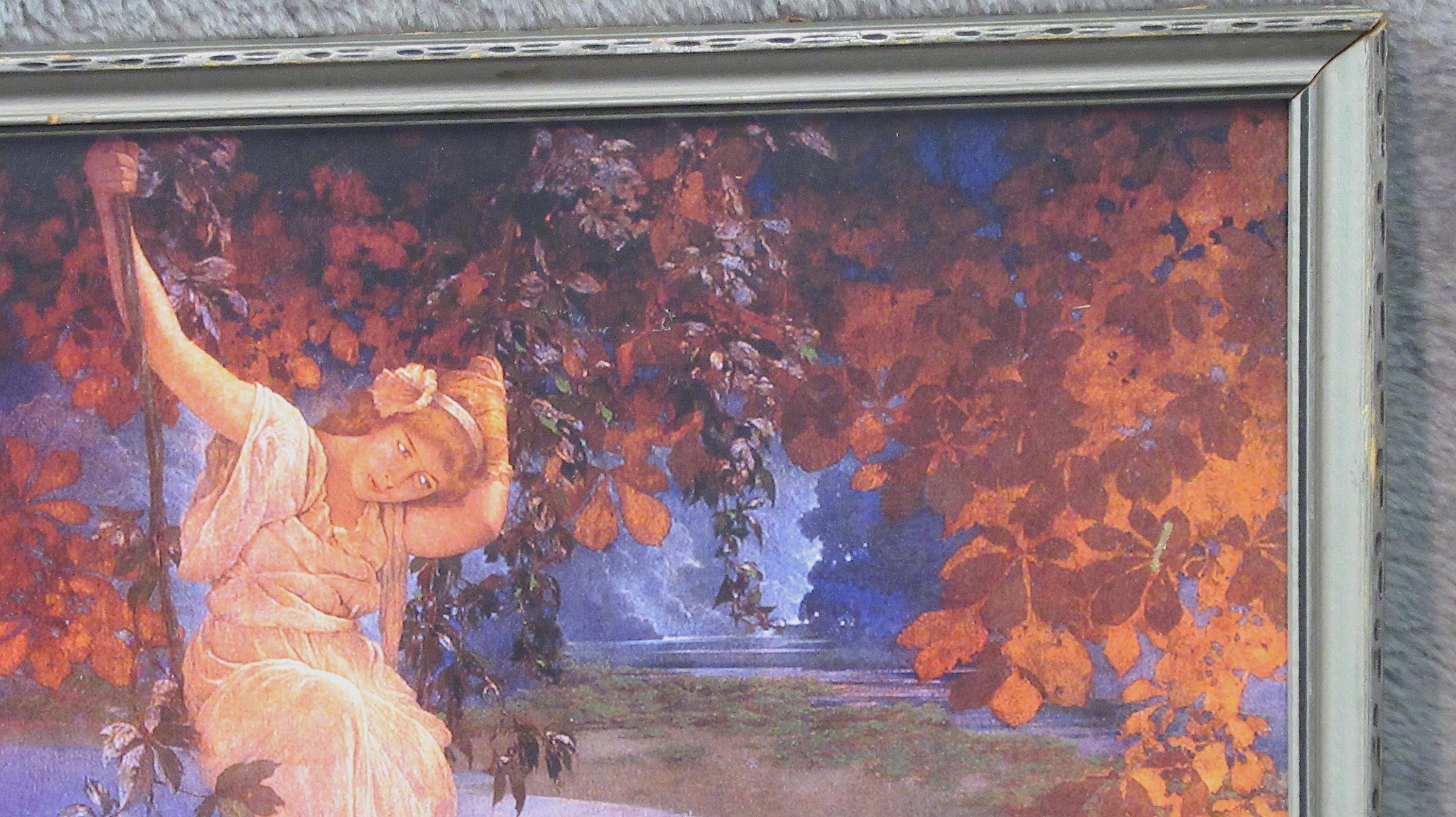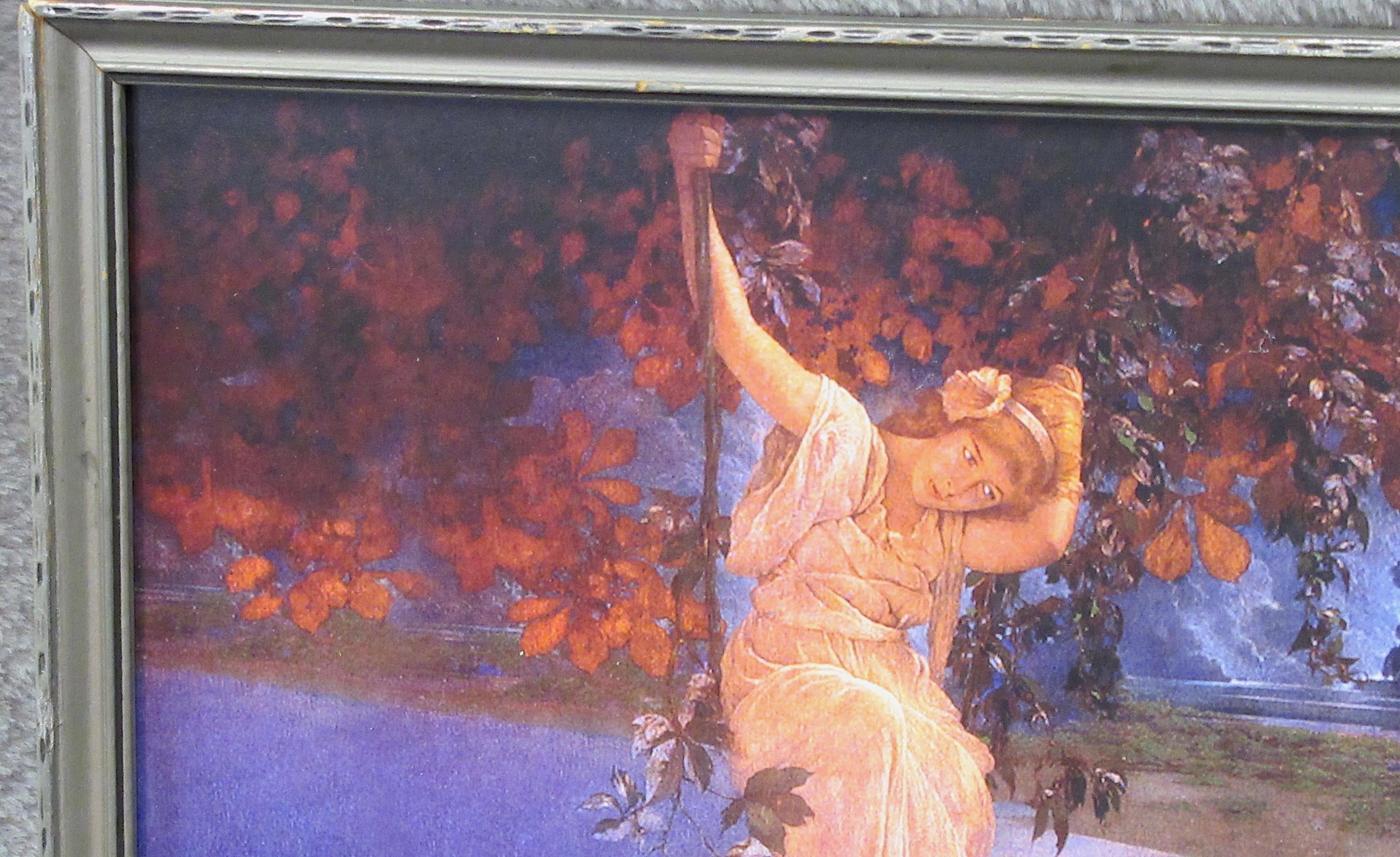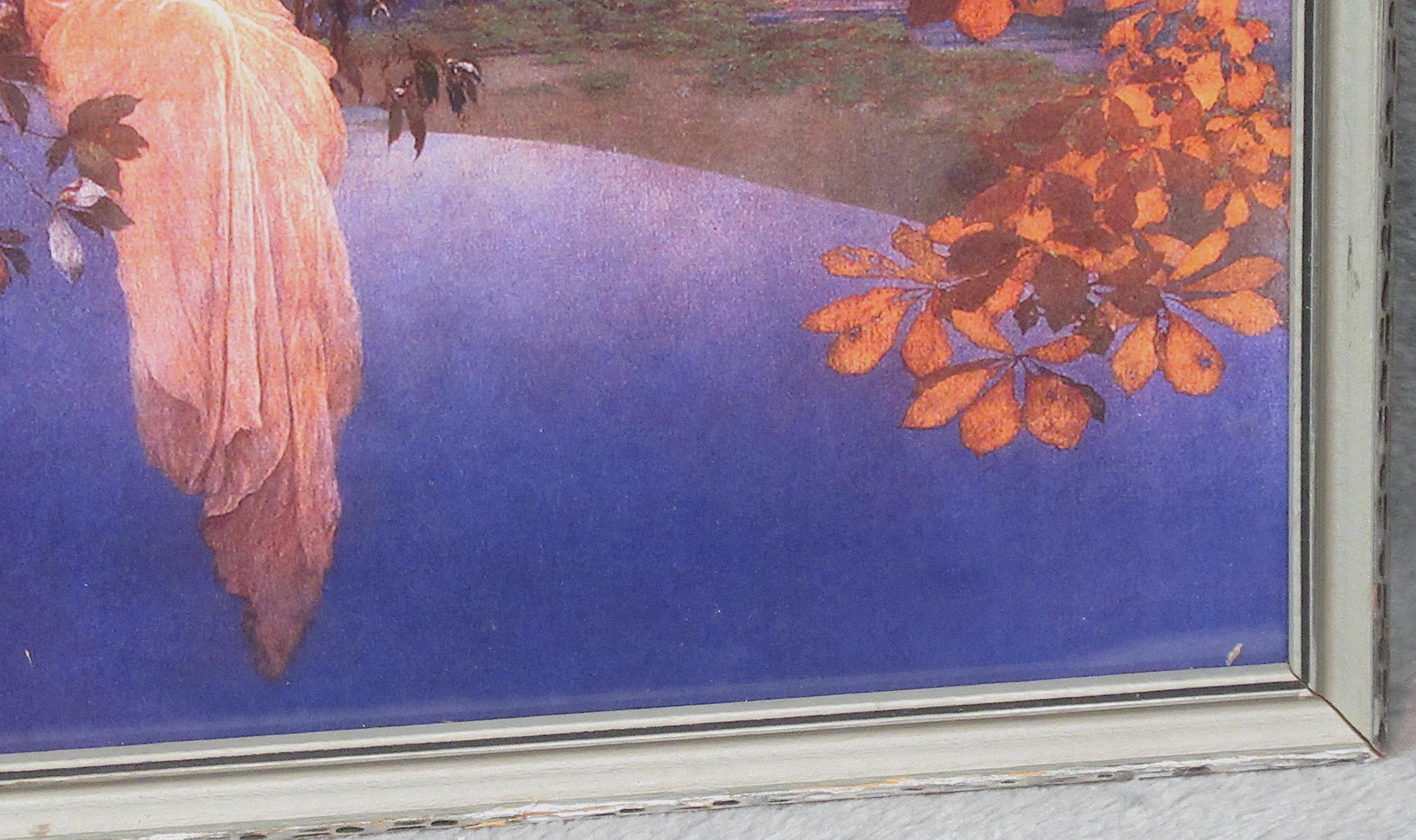This is part of a 4 piece Parrish collection of estate lithos and deco frames,, havent had a Reveries for awhile, this is a nice one ! great color, appears to be newer print . good size / probably mid century not from new magazine or calendar .. 11 x 9