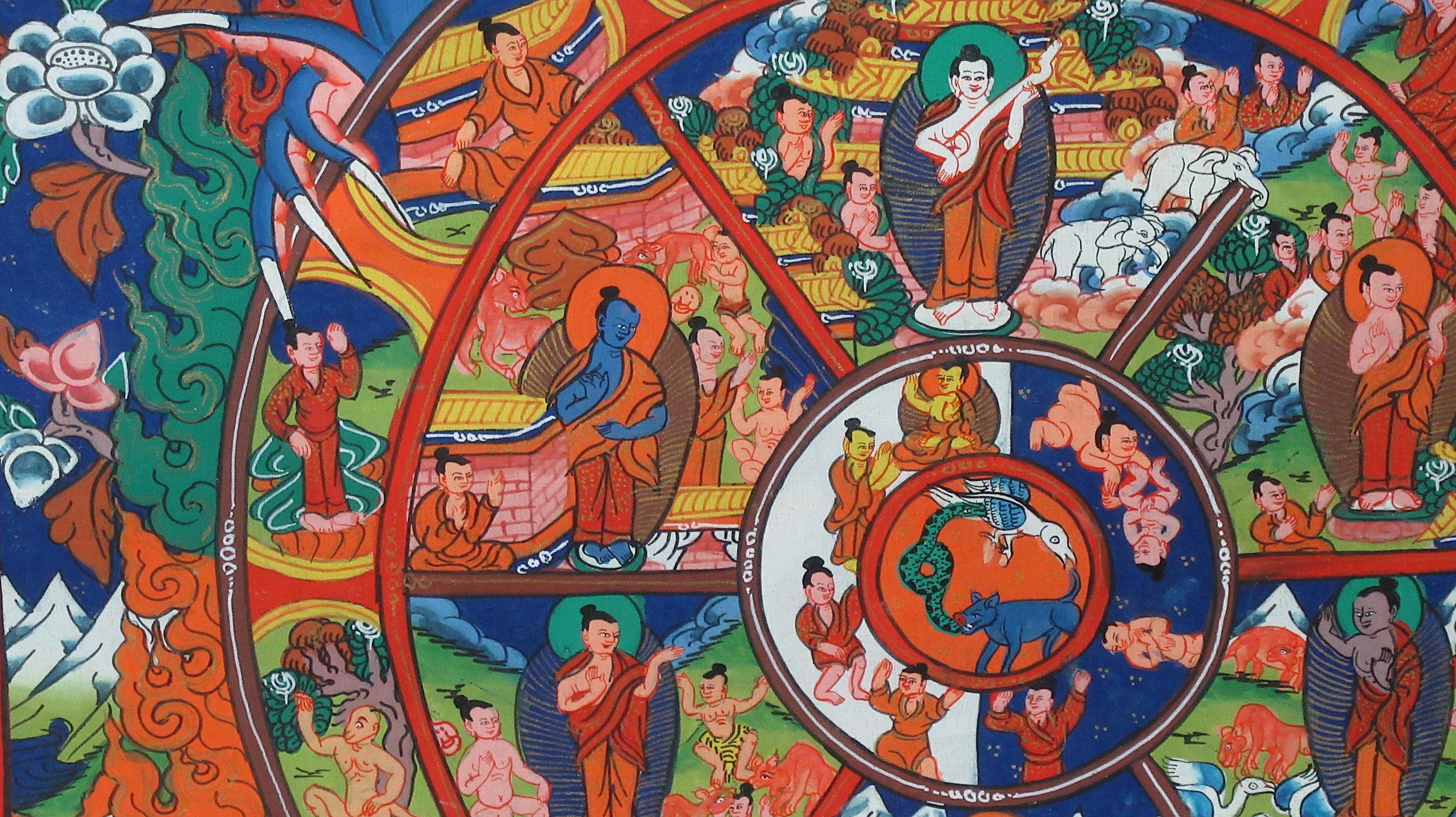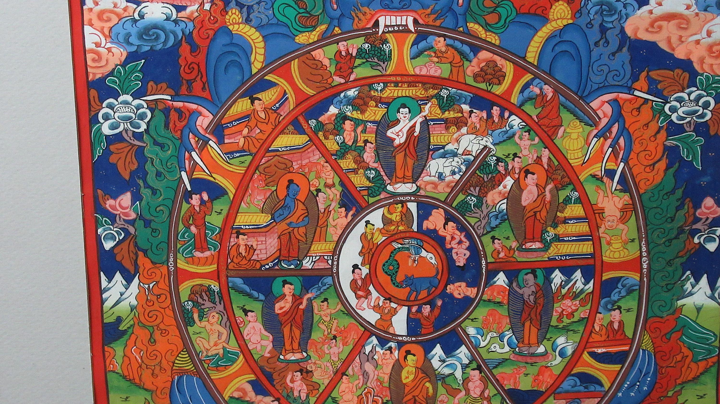 Original painting from Katmandu area, Circle of life, 17.5 x 21.5 Excellent condition