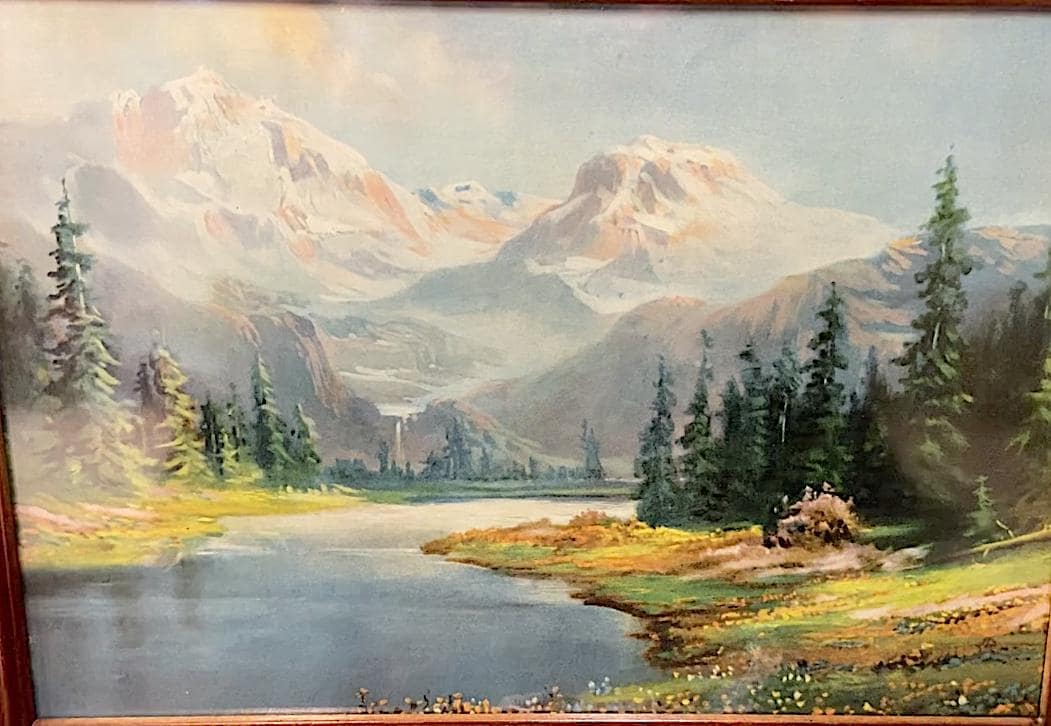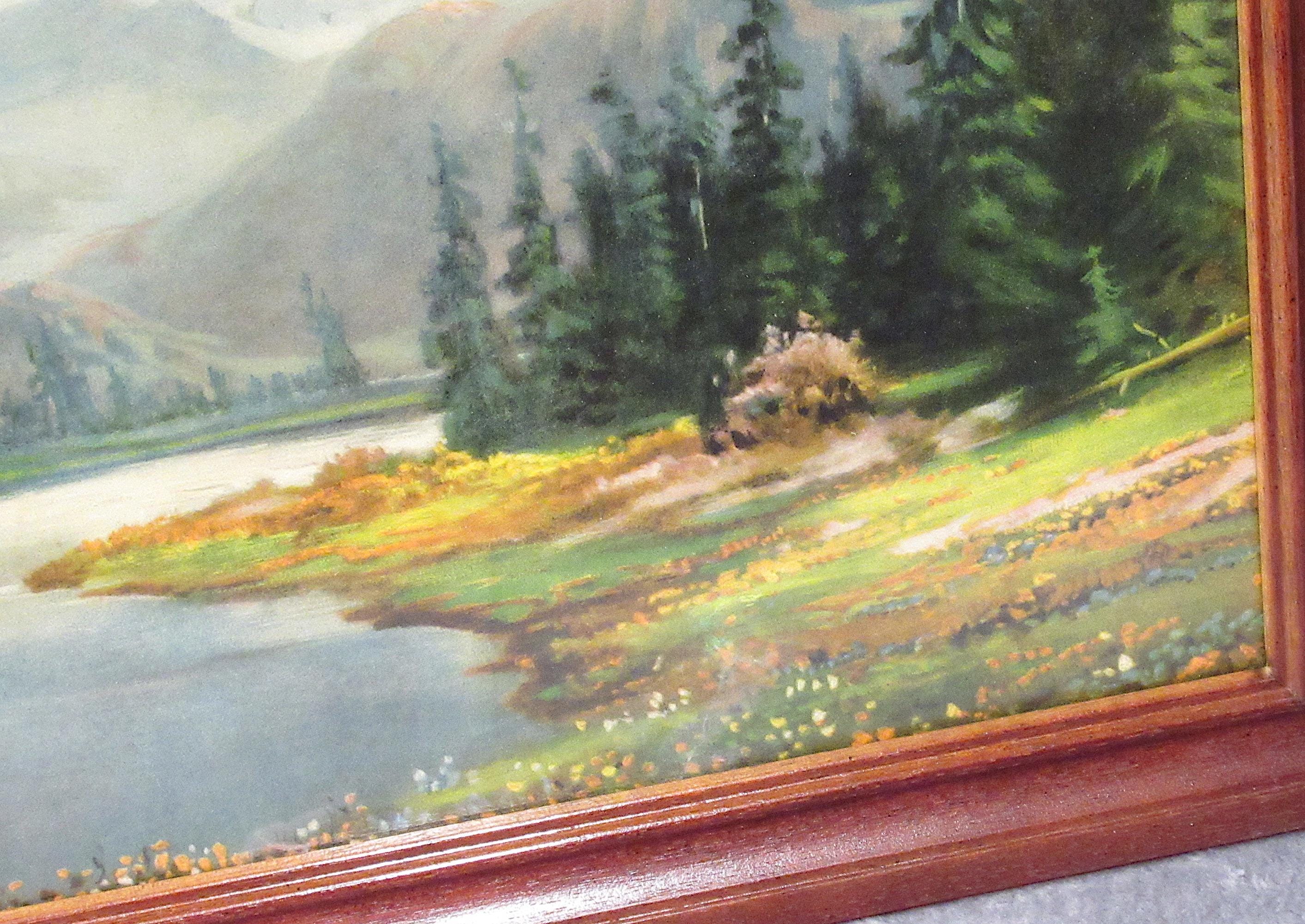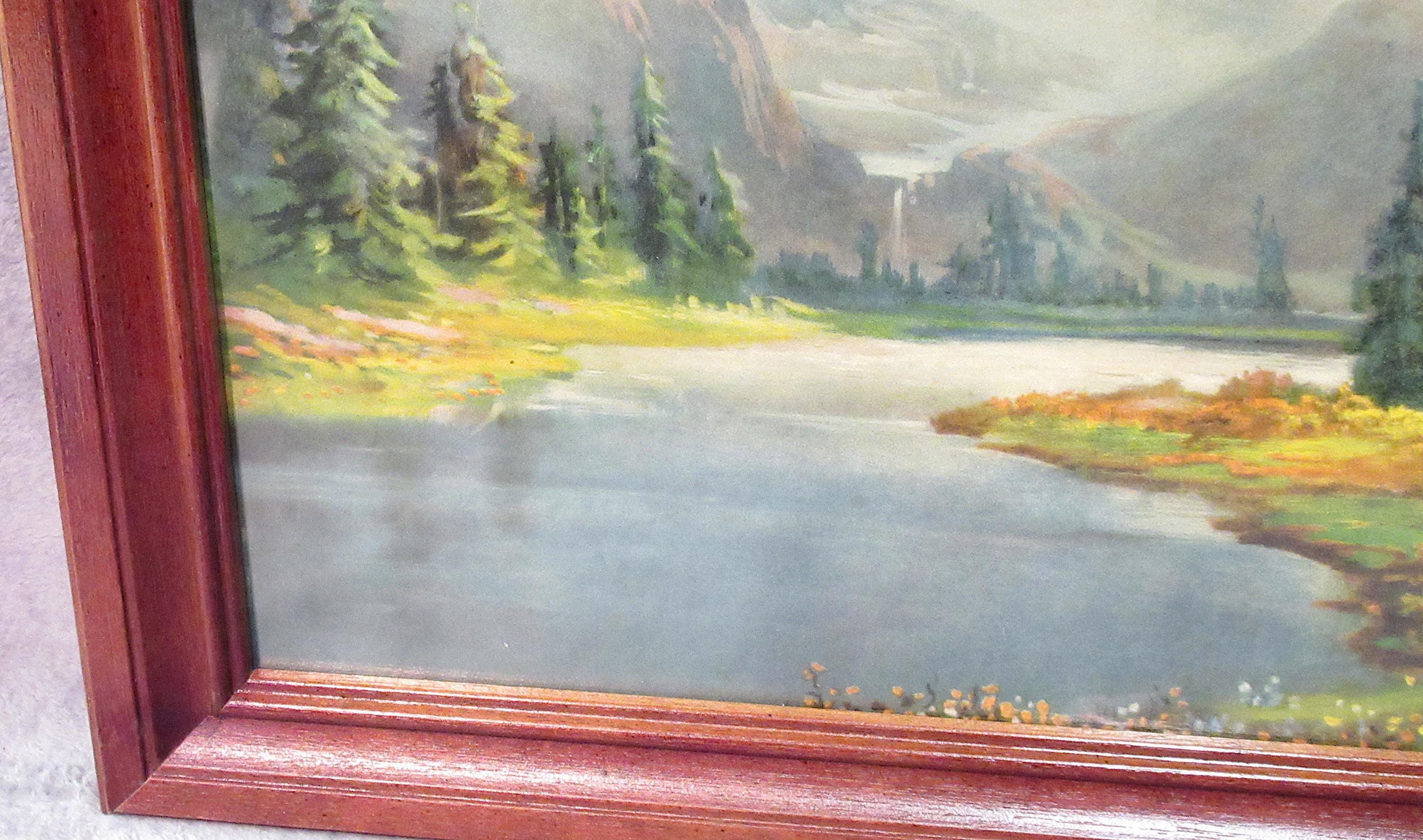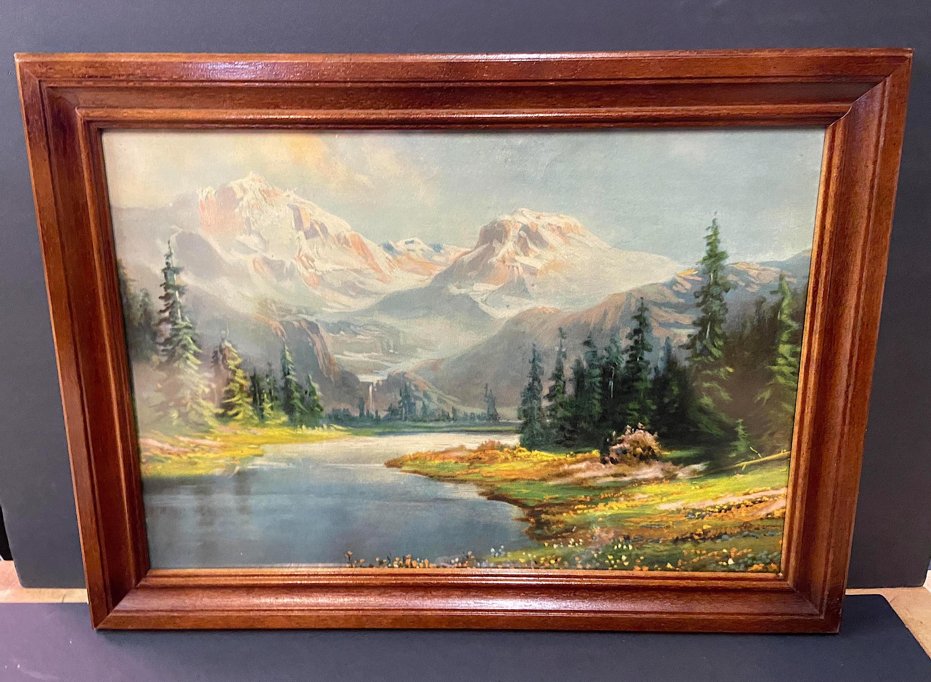 Antique Original R. Atkinson Fox, Larger Printing 1920s "Nature's Sublime Grandeur", Vintage Frame / 22 X 17" original art print from 1920s. Good color and detail, the best.. framed in wood period frame / minor tear at bottom, not really visible looks great.