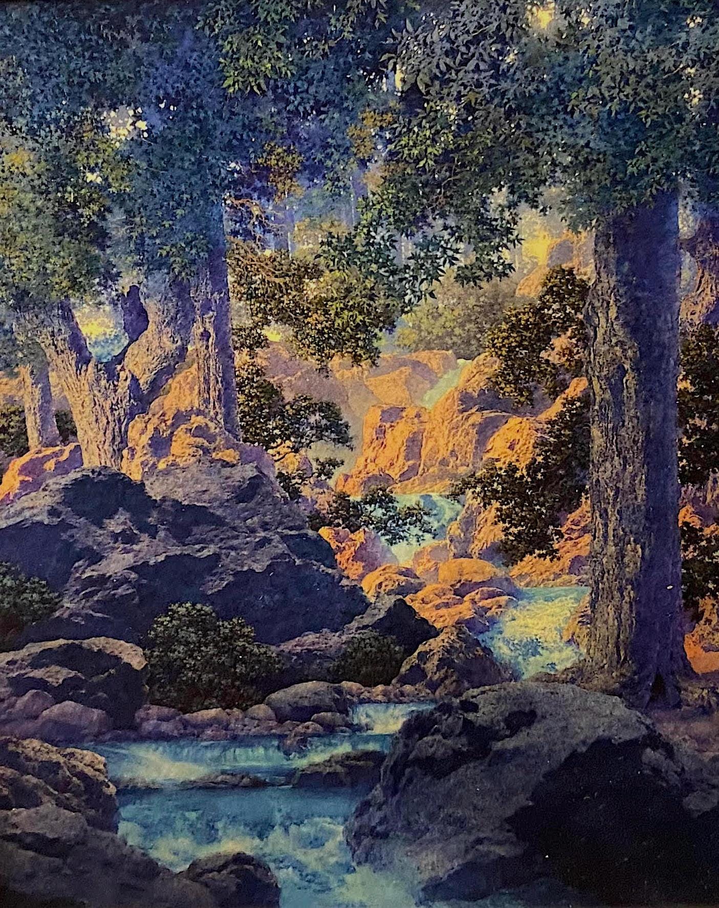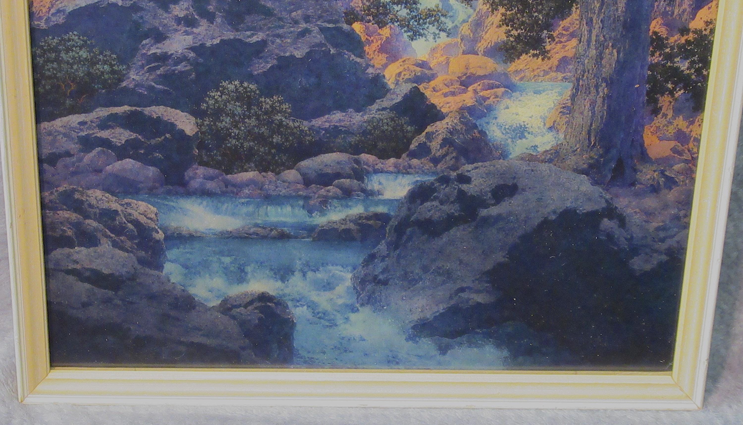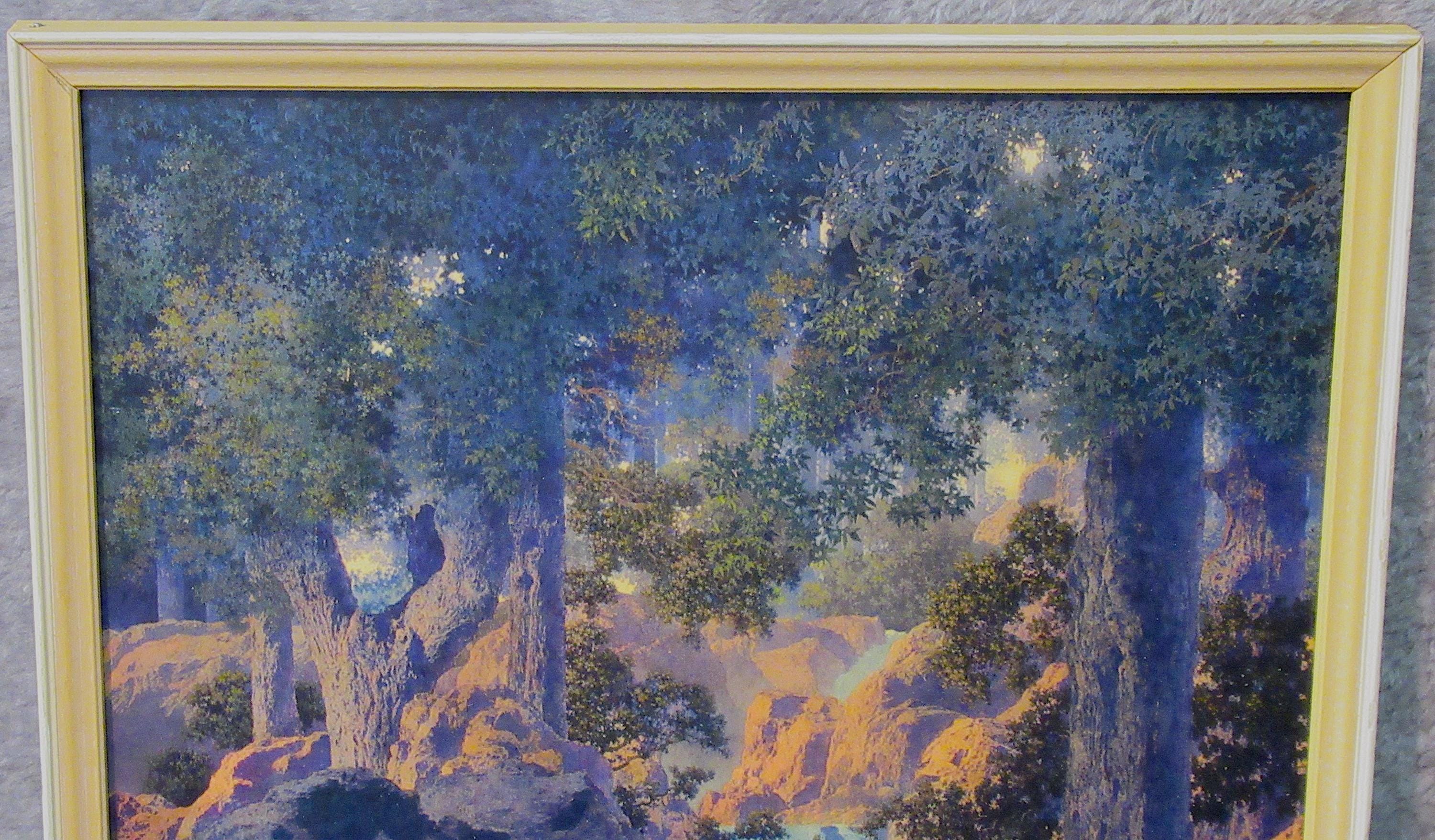 Maxfield Parrish high quality art print, appears to be mid century or earlier printing. 1900s vintage/antique frame, remarkable colors and detail.