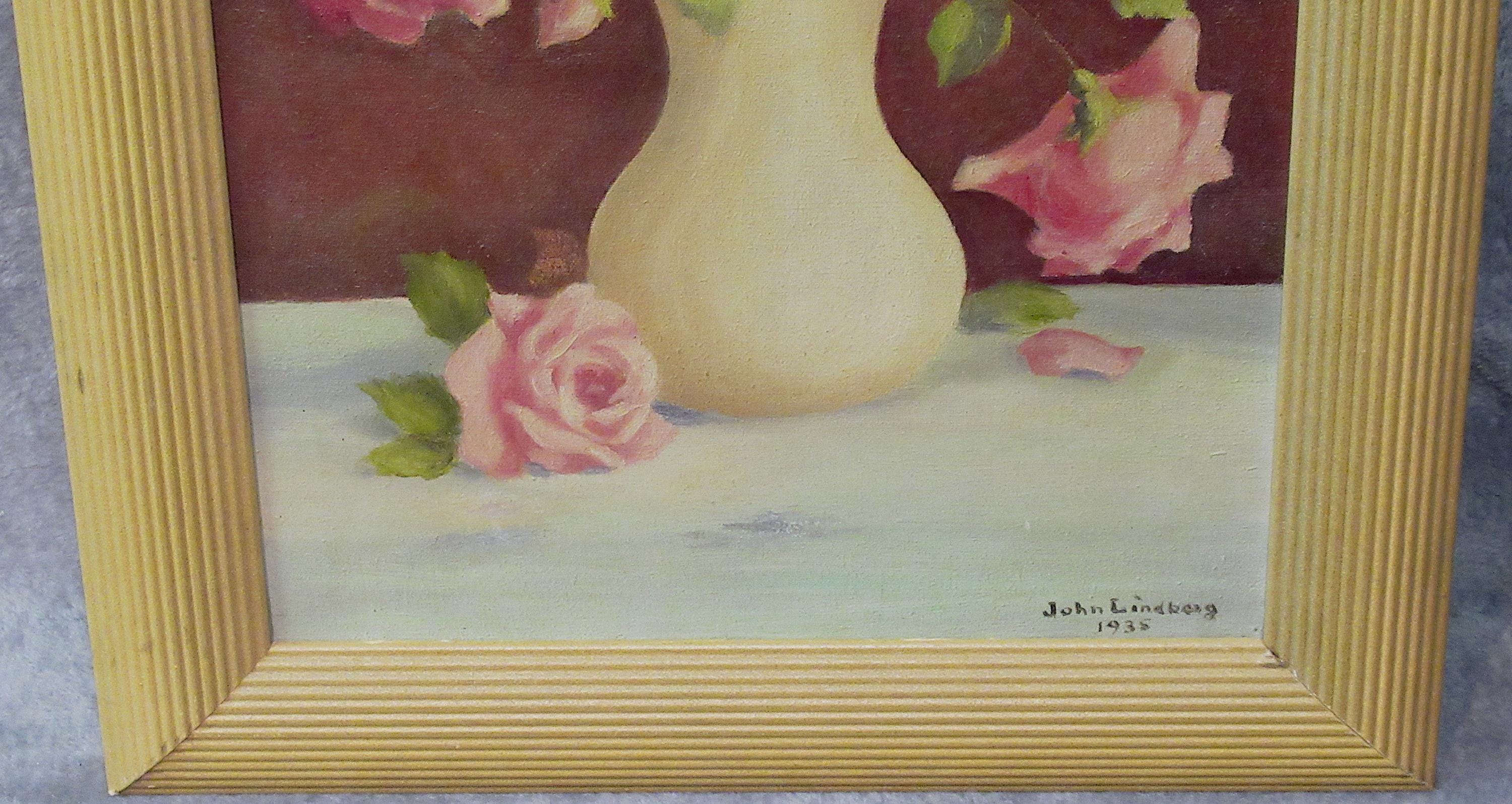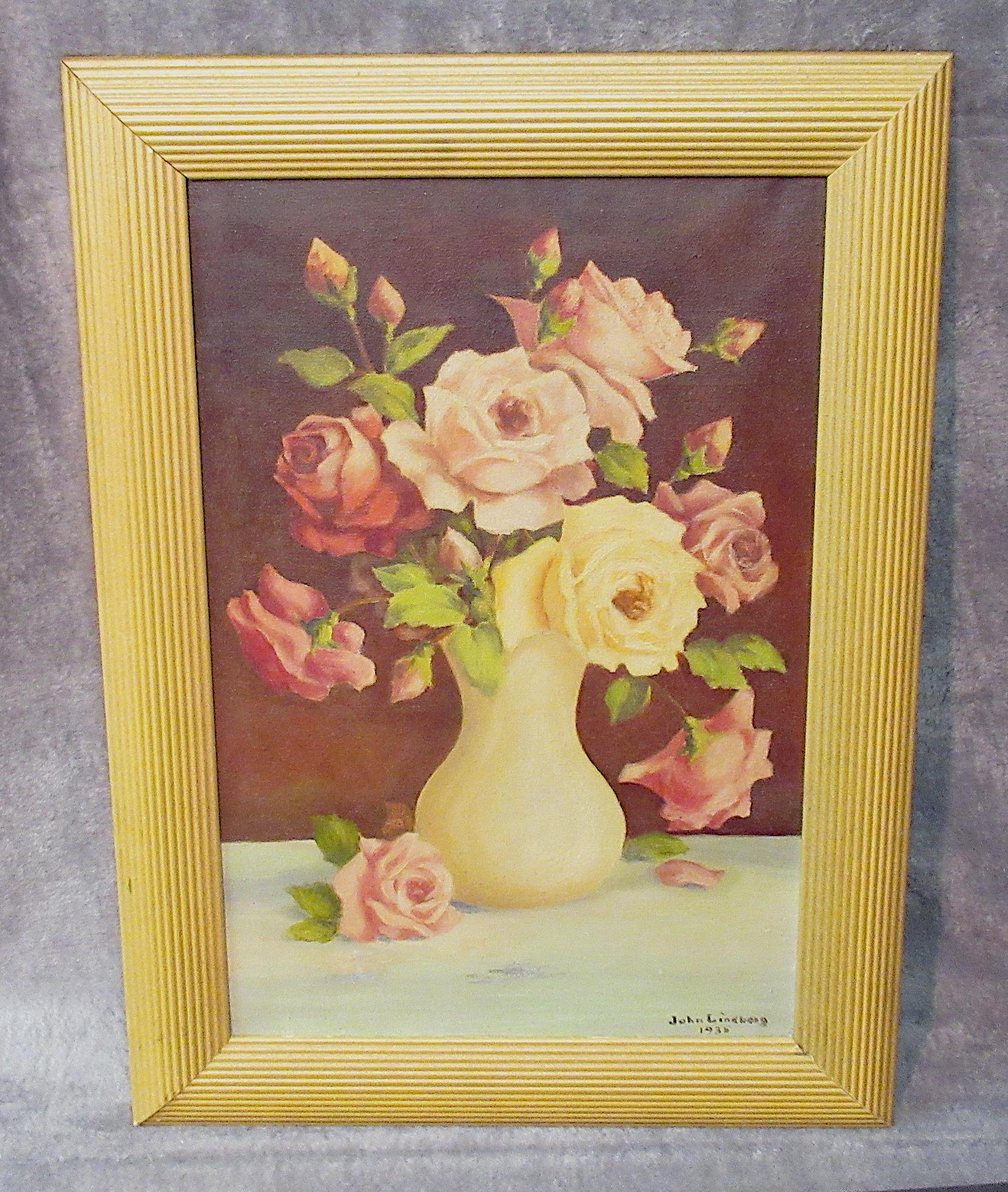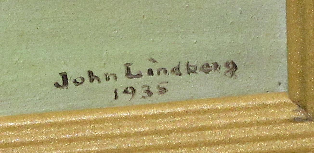 Original Oil Painting on canvas/ Well done, Signed John Lindburg 1935 , Custom contemporary frame. Excellent Rich Colors, and brush work / 15 X 21