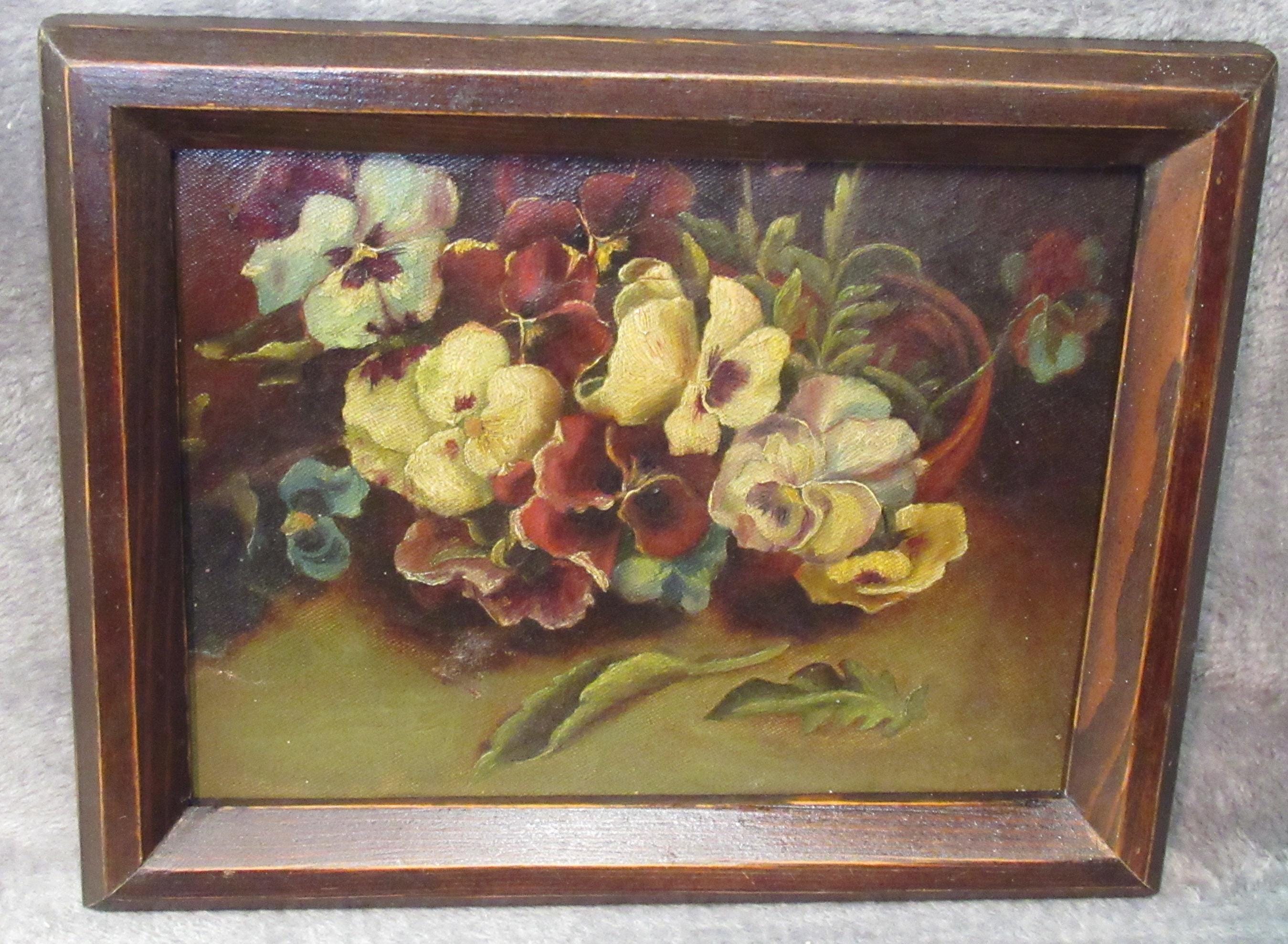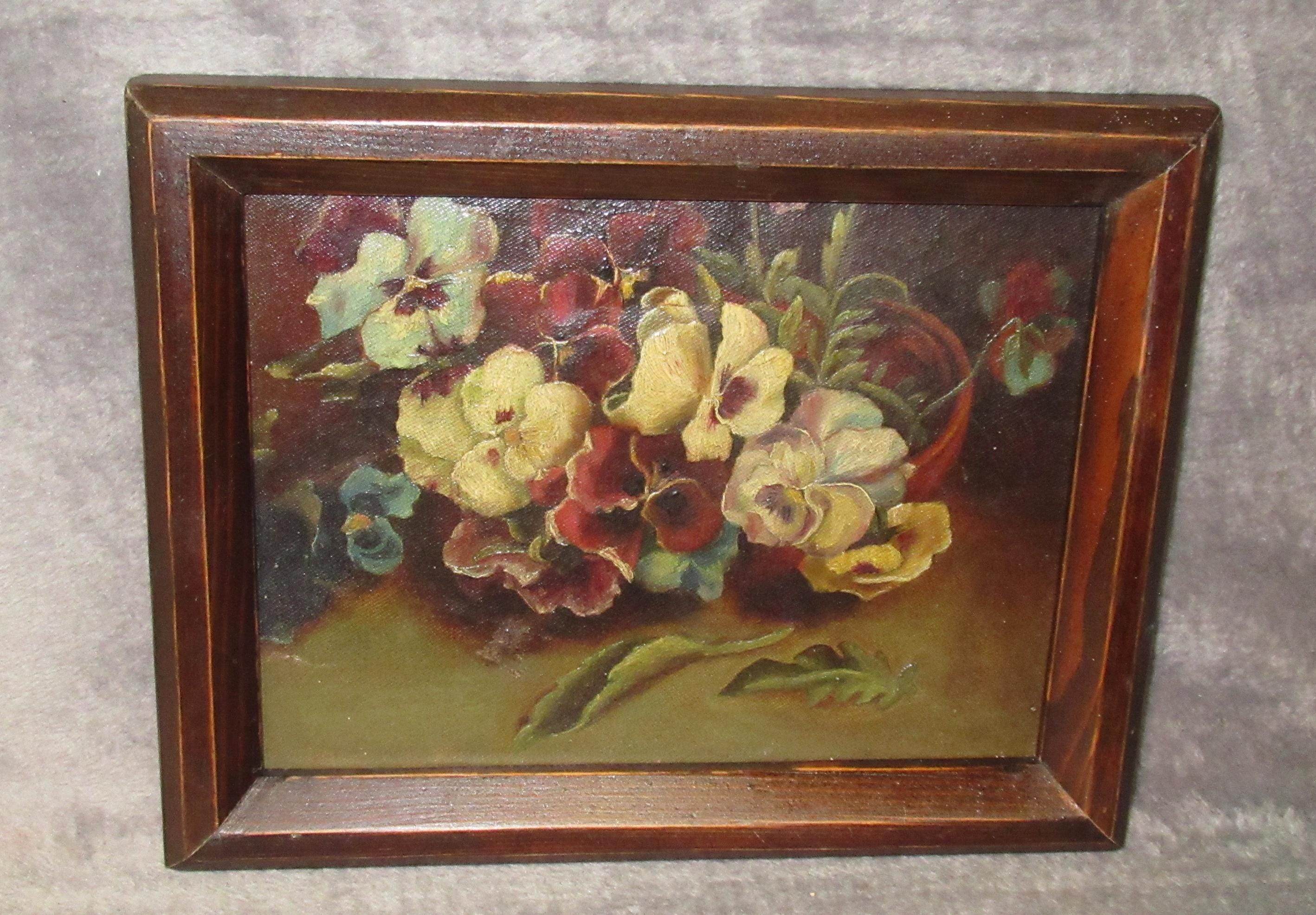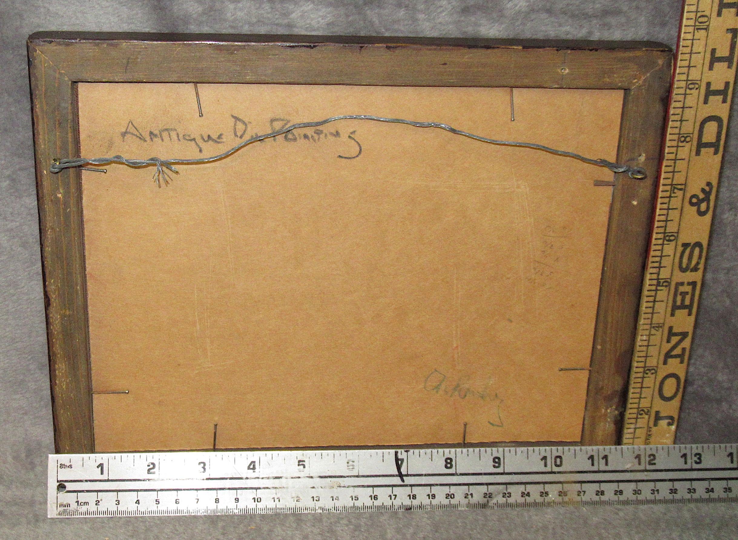 Original Antique Oil Painting / Well done, good condition, smaller damage at lower center, Diminutive Size / Antique/Vintage wood frame. Excellent Rich Colors, and brush work,