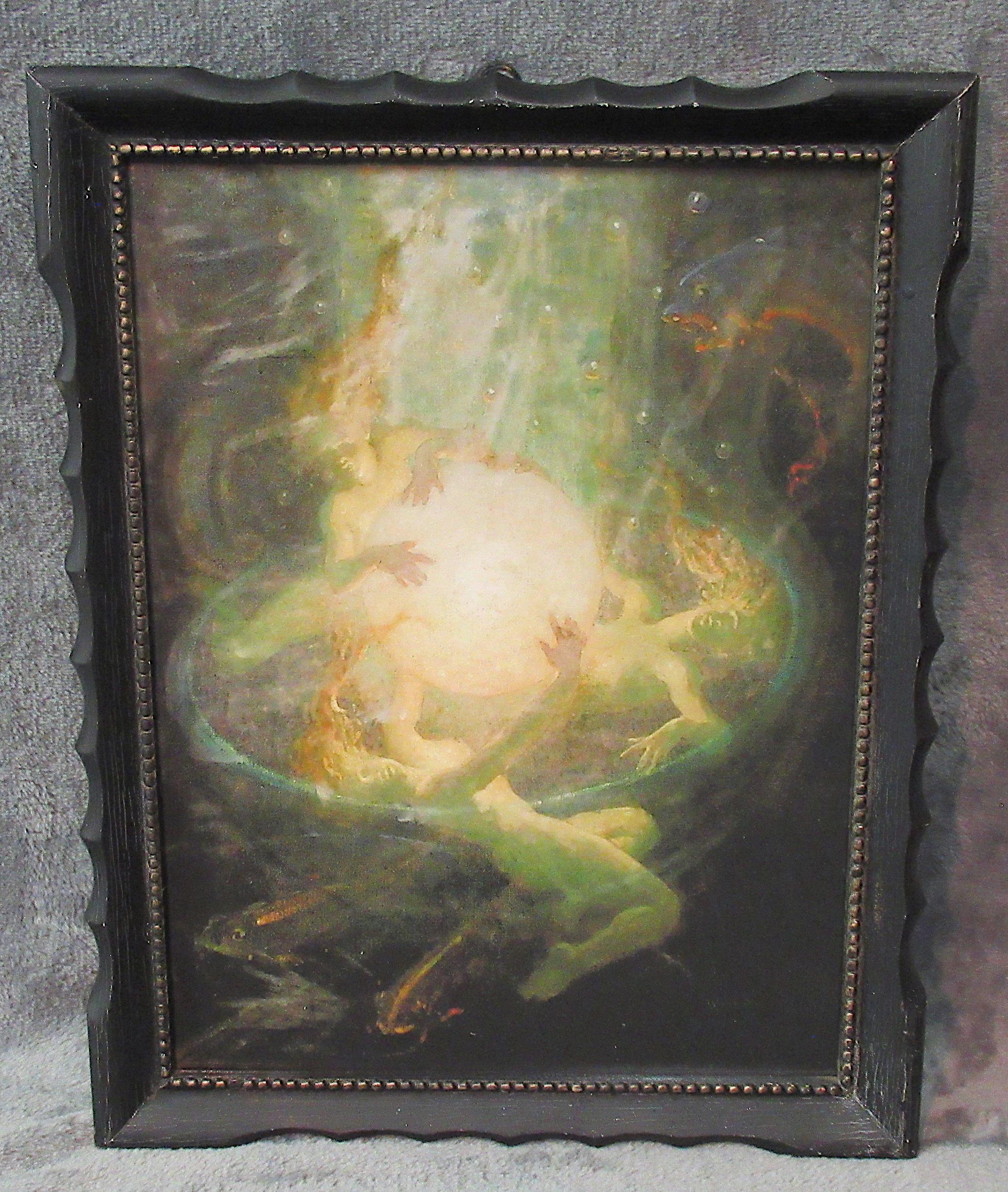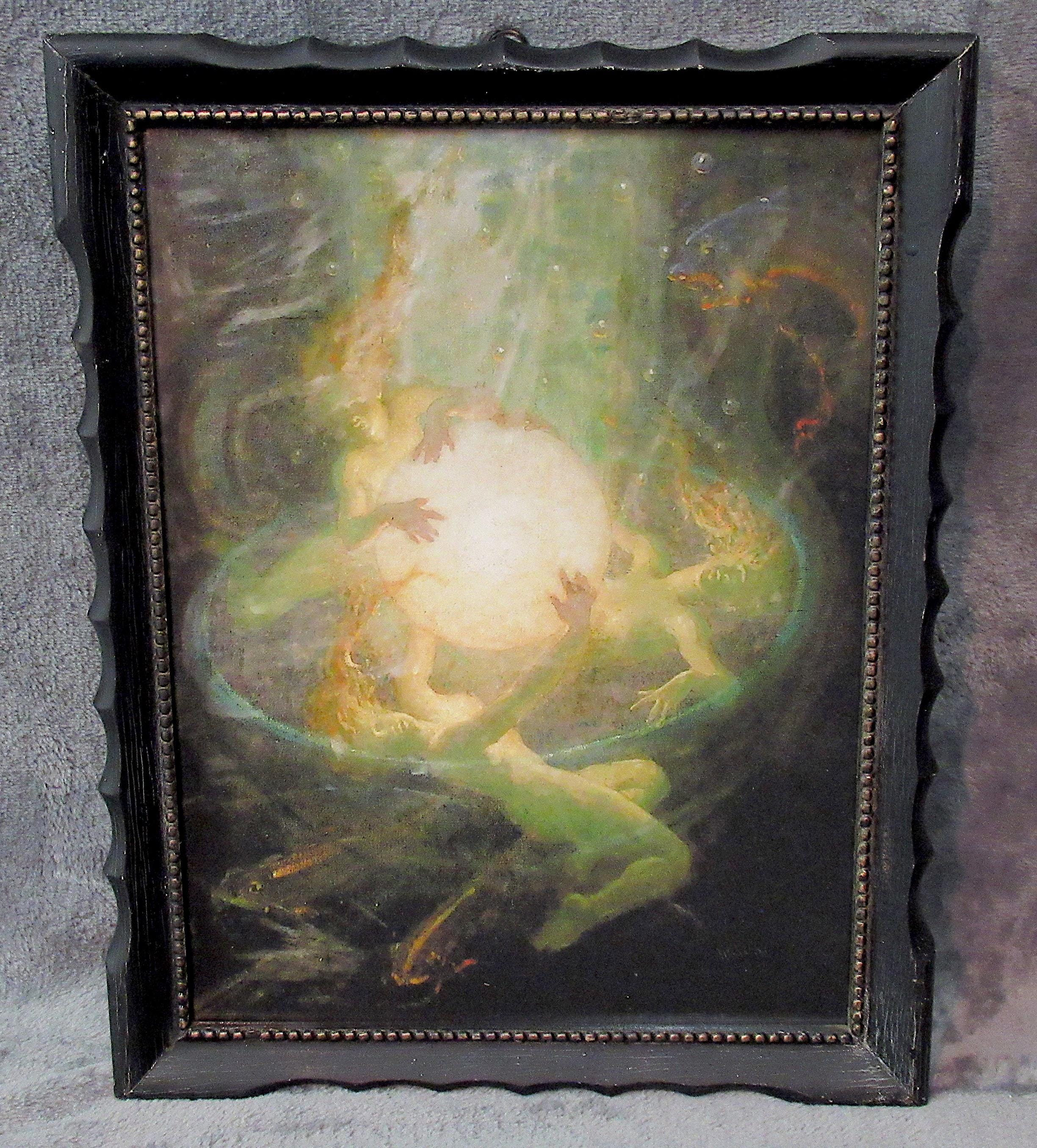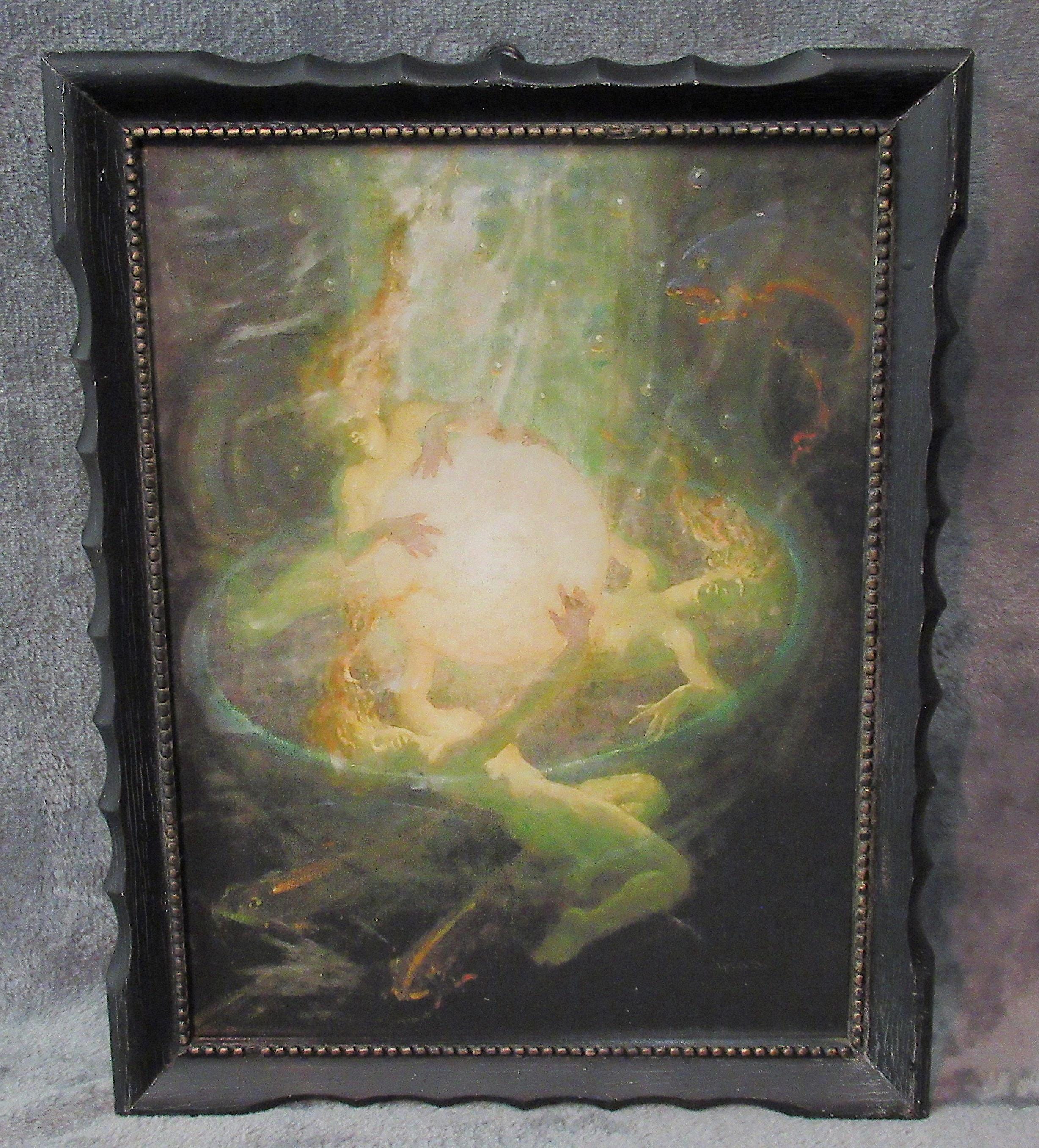 Mermaid, Arthur Price Spears, Color Art Print in Vintage Dark Frame ,