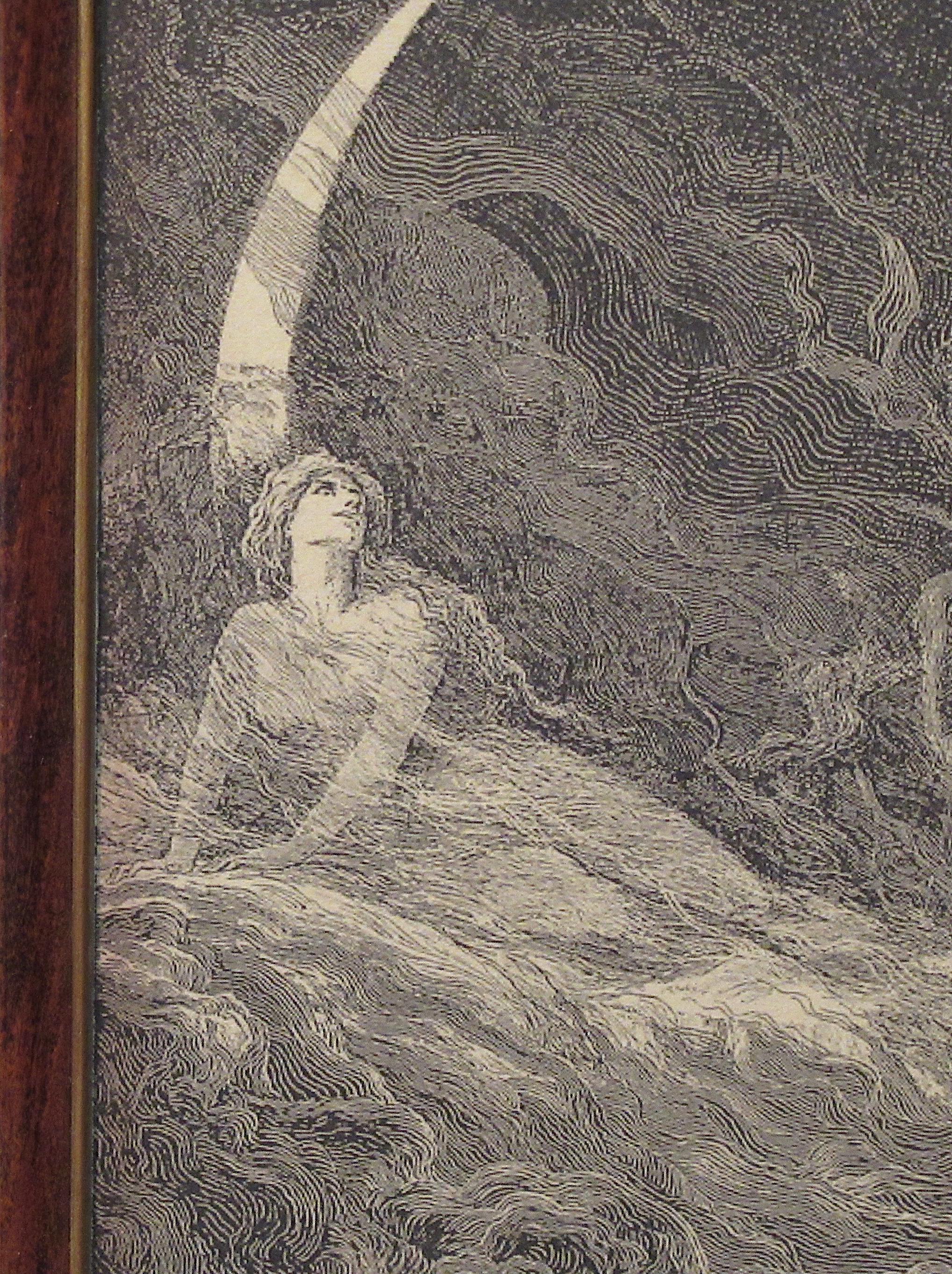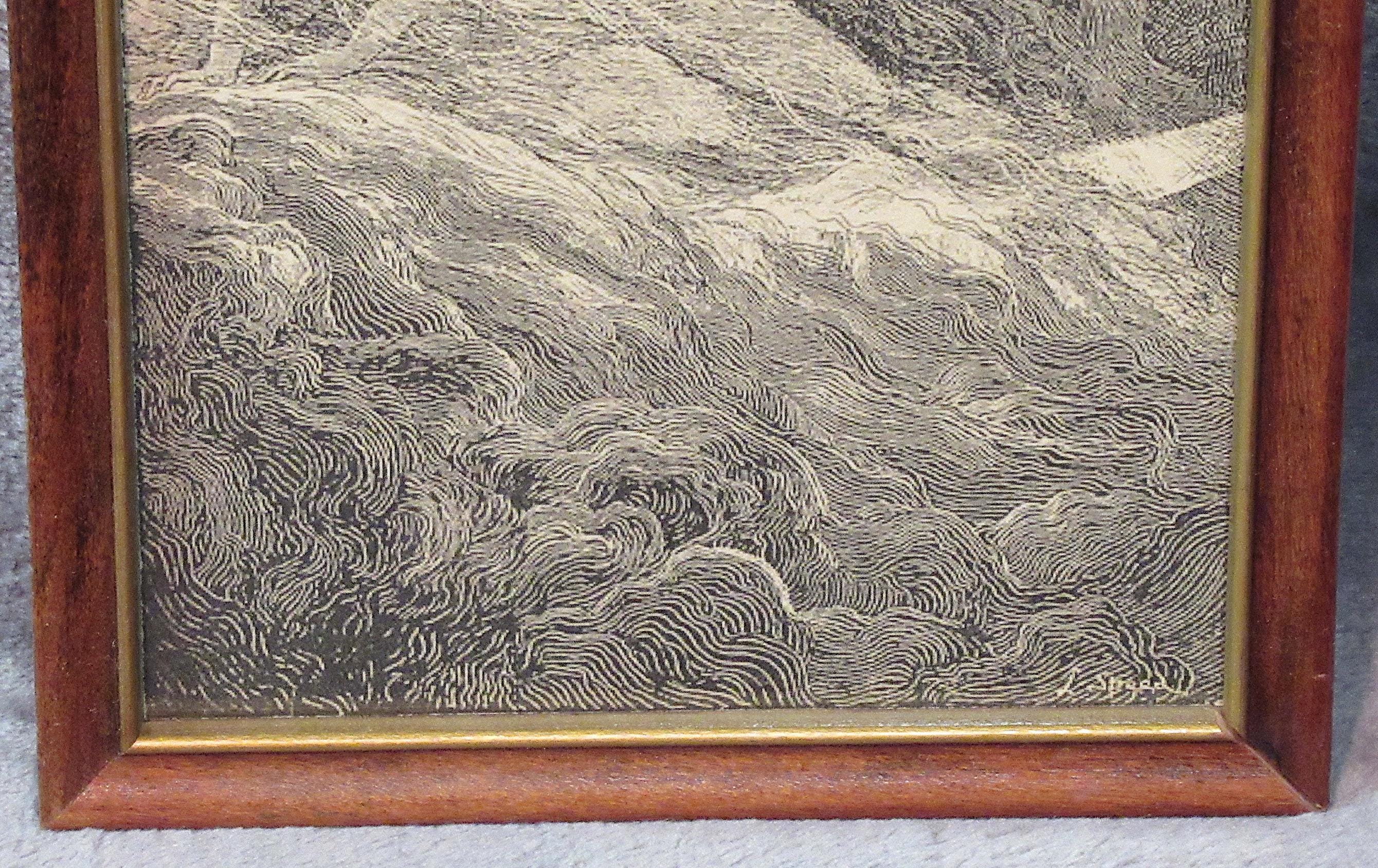 Very nice print, etching or art print, nice example in super condition, vintage frame, Approx. 6 x 9.5 / signed.