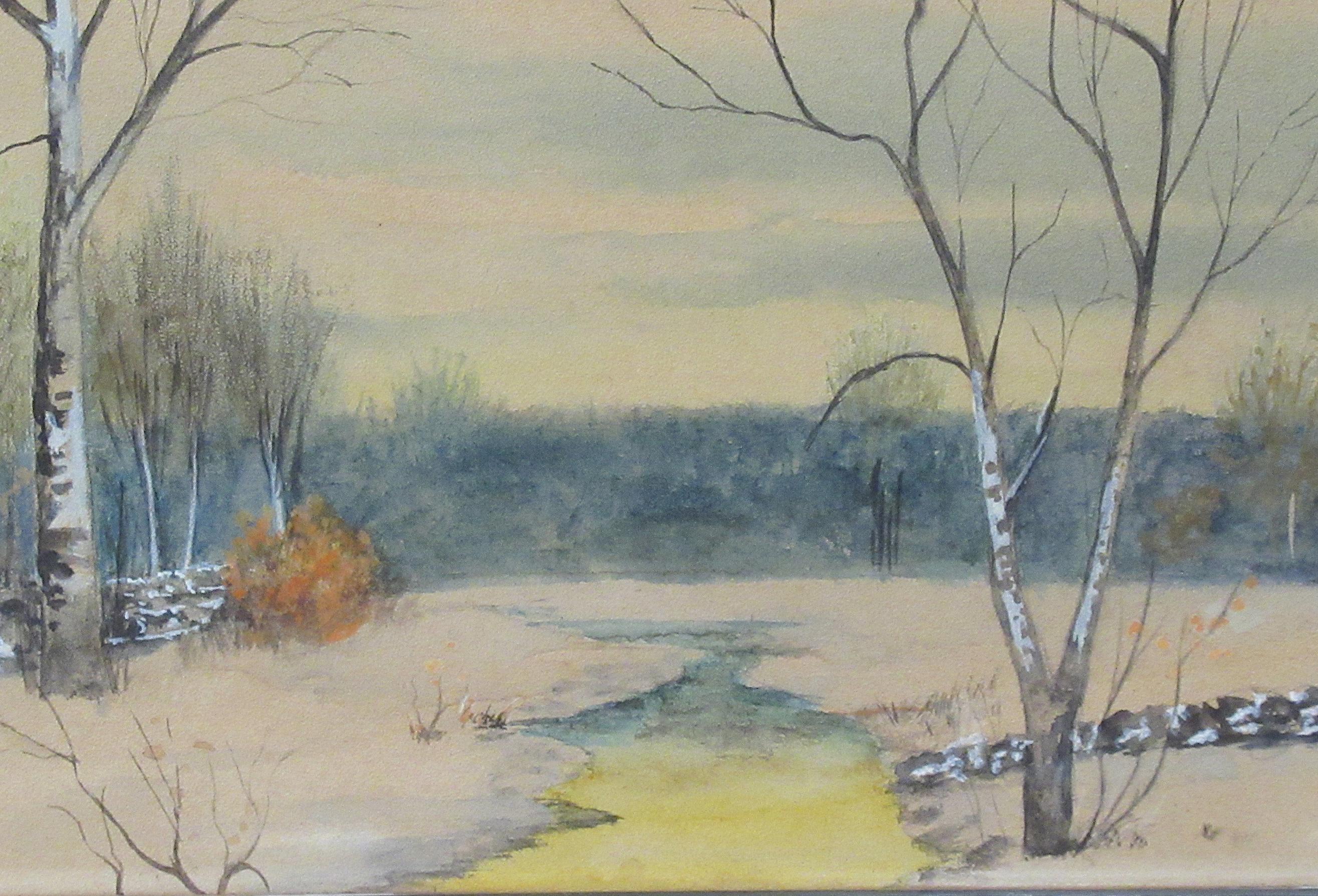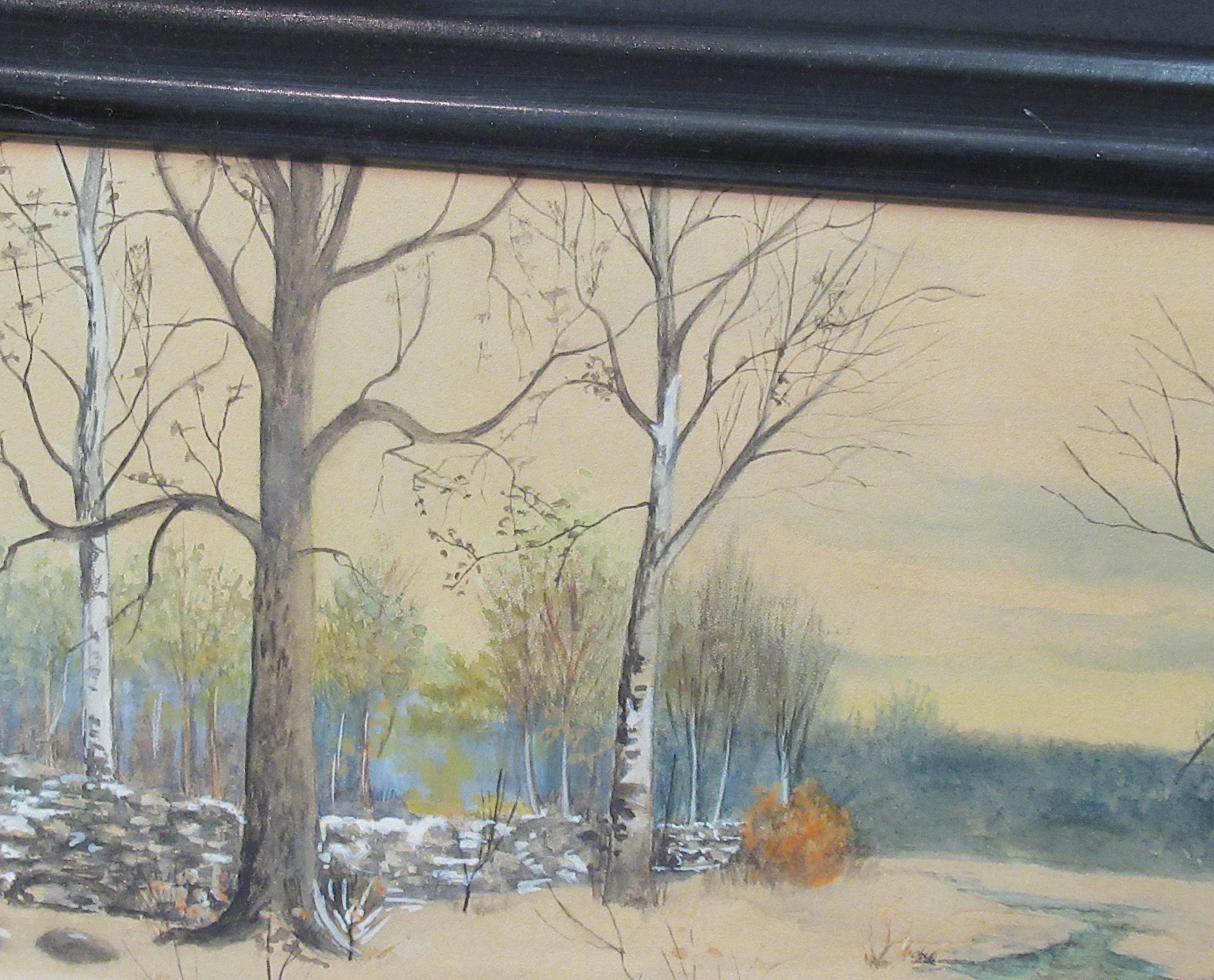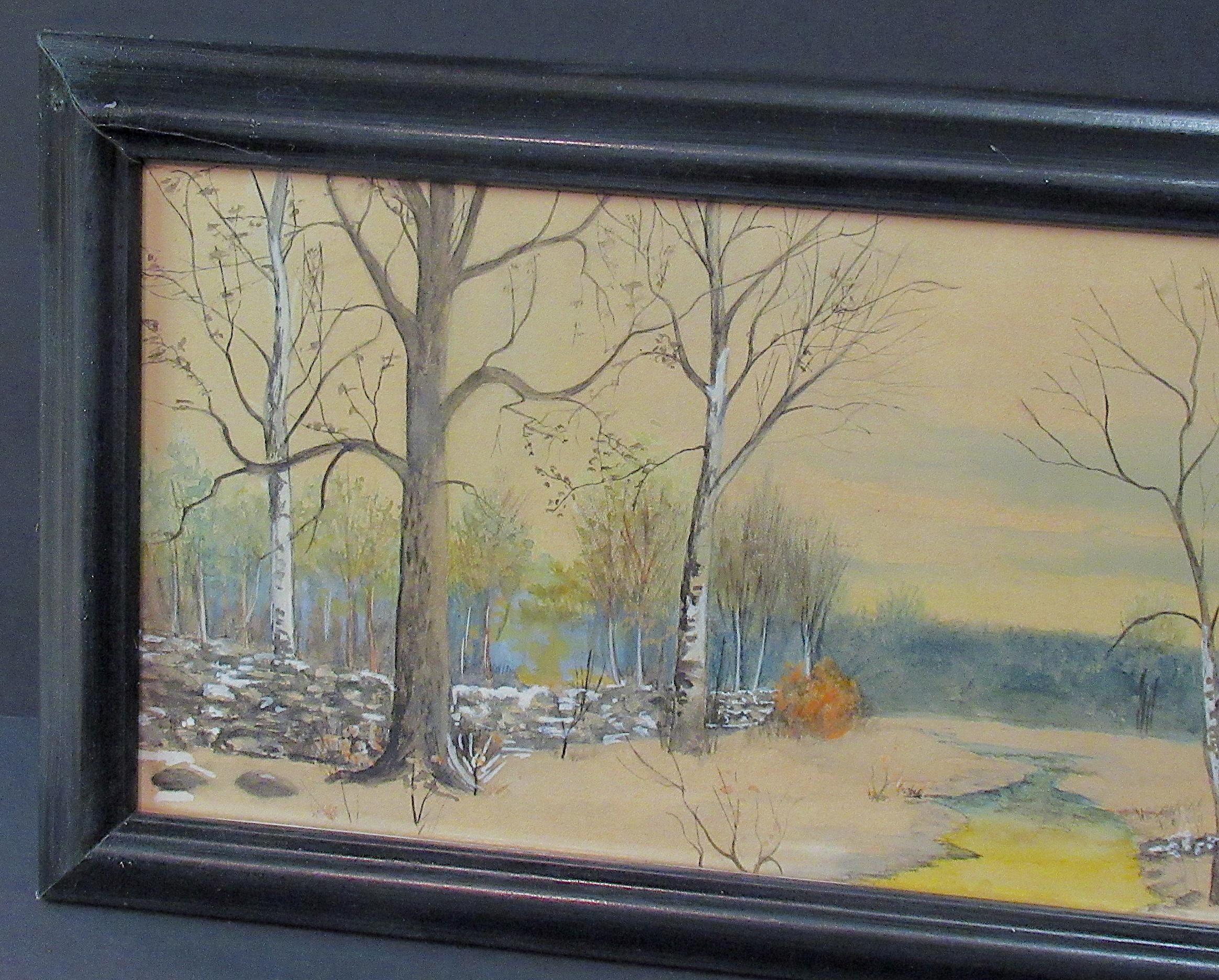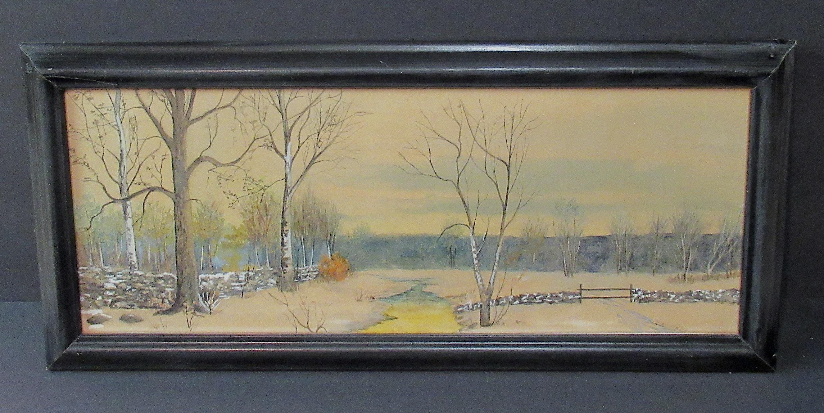 Original Hand Painted Art from right around 1920 / Excellent Quality Work in perfect condition / Beautiful Late Winter Scene / More recent frame, Fine Quality ! good size Approx 8.5 X 17.5