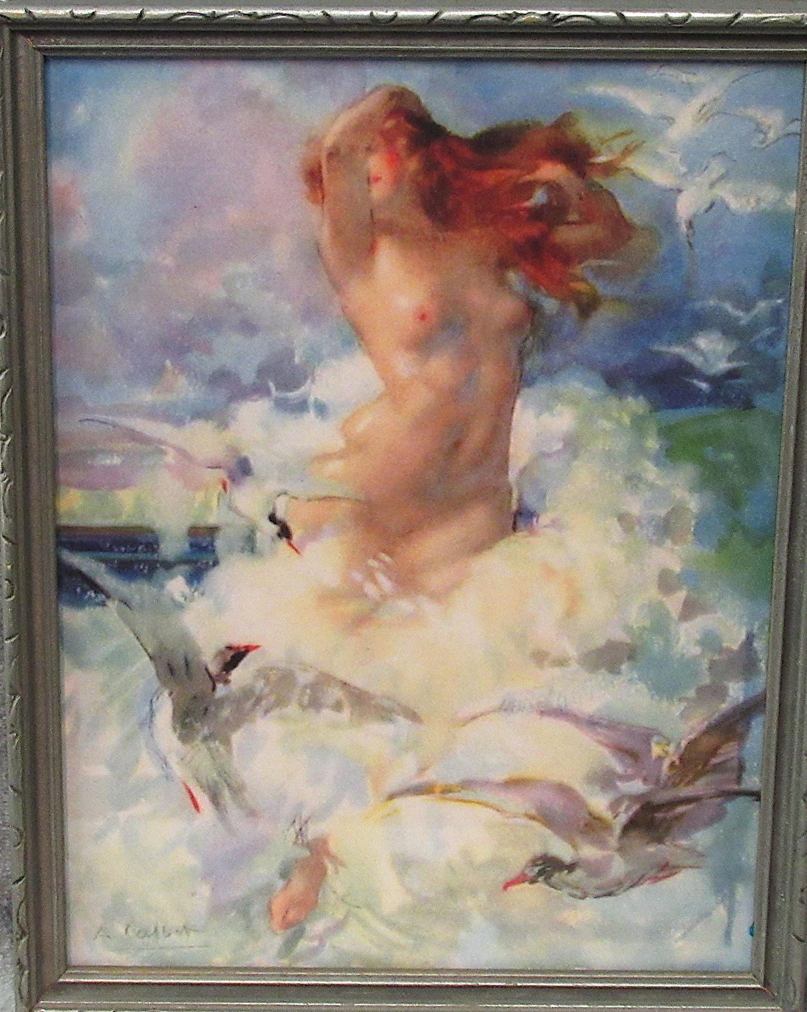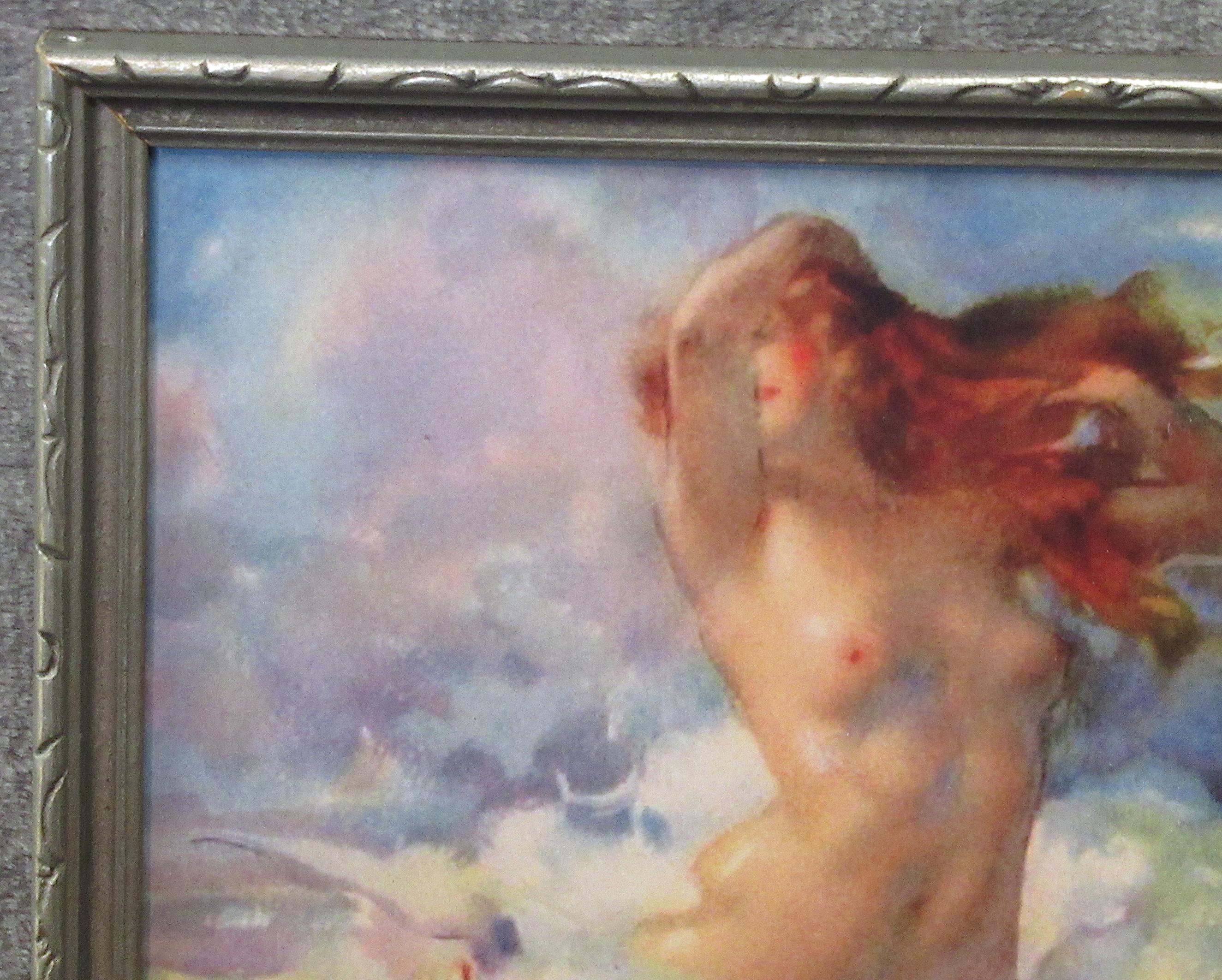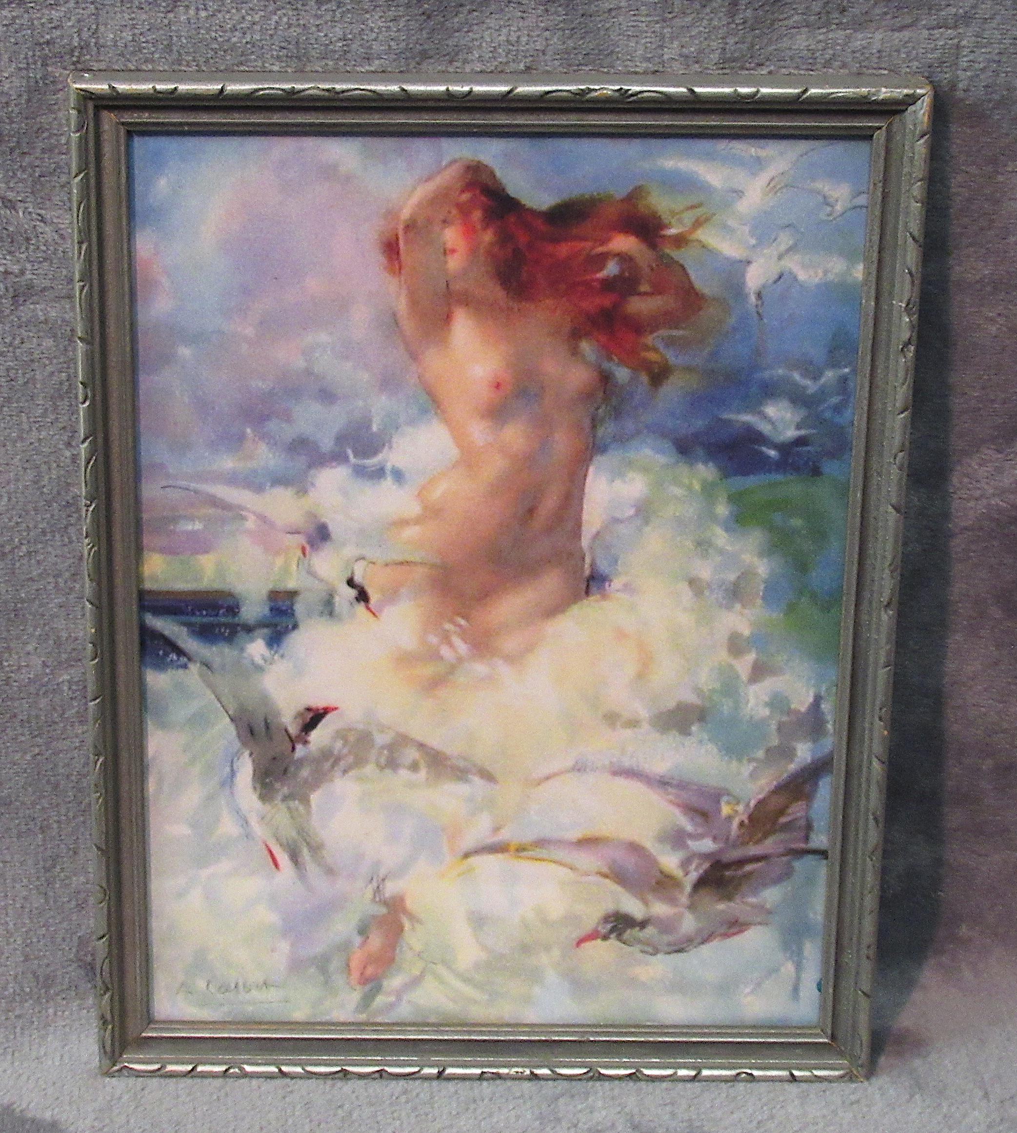 Antone Calbert Art Print "Aurora" from his Circa 1900s Painting in Early Deco Frame