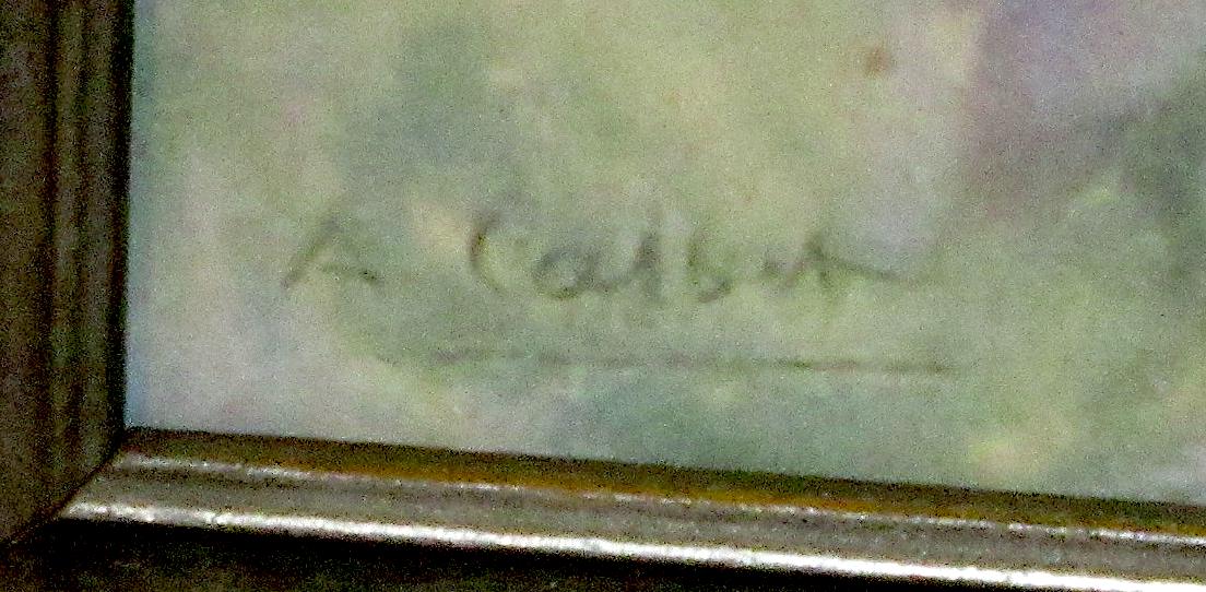 Excellent condition, great color and detailed gicleee art print, signed. 1930s deco frame.